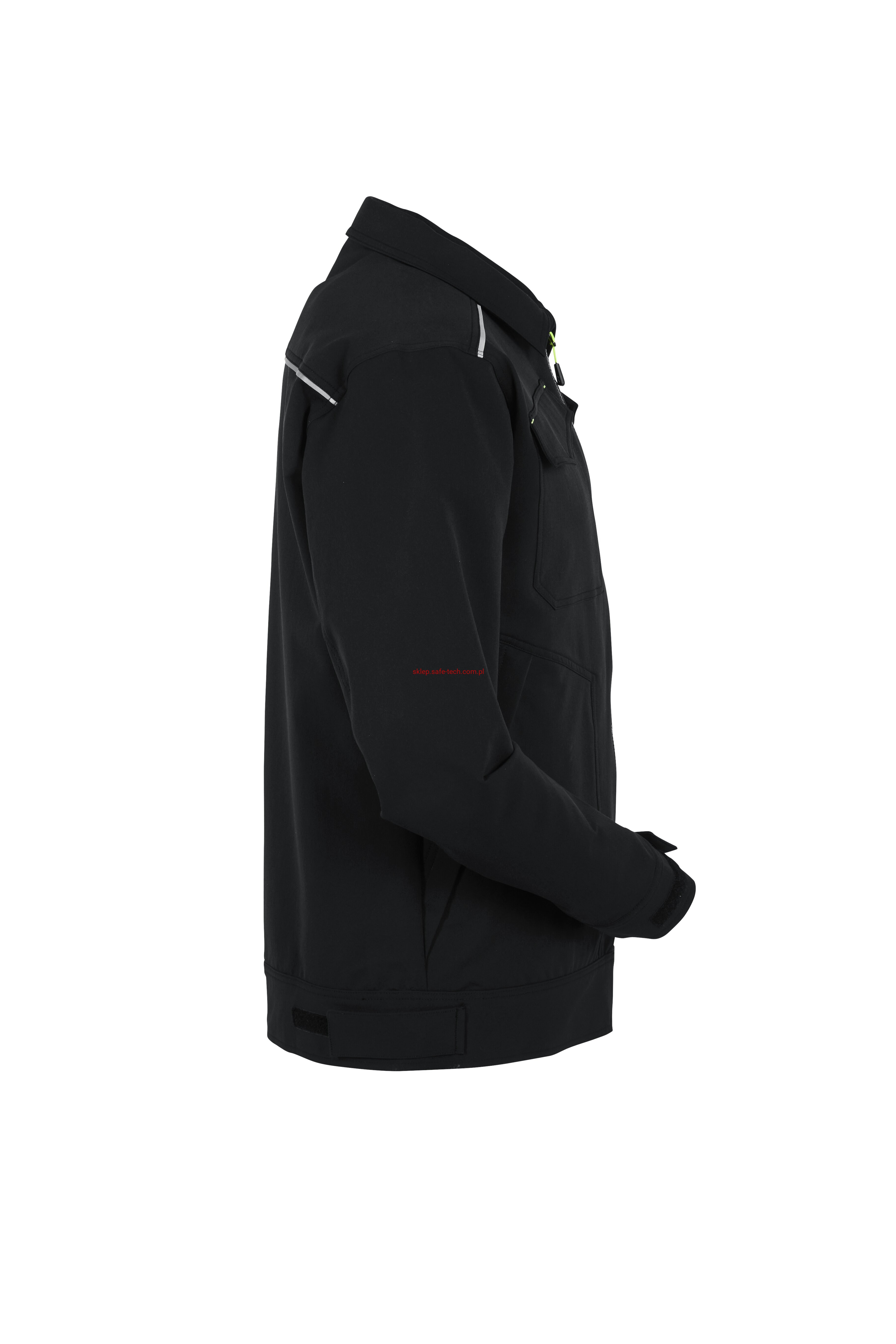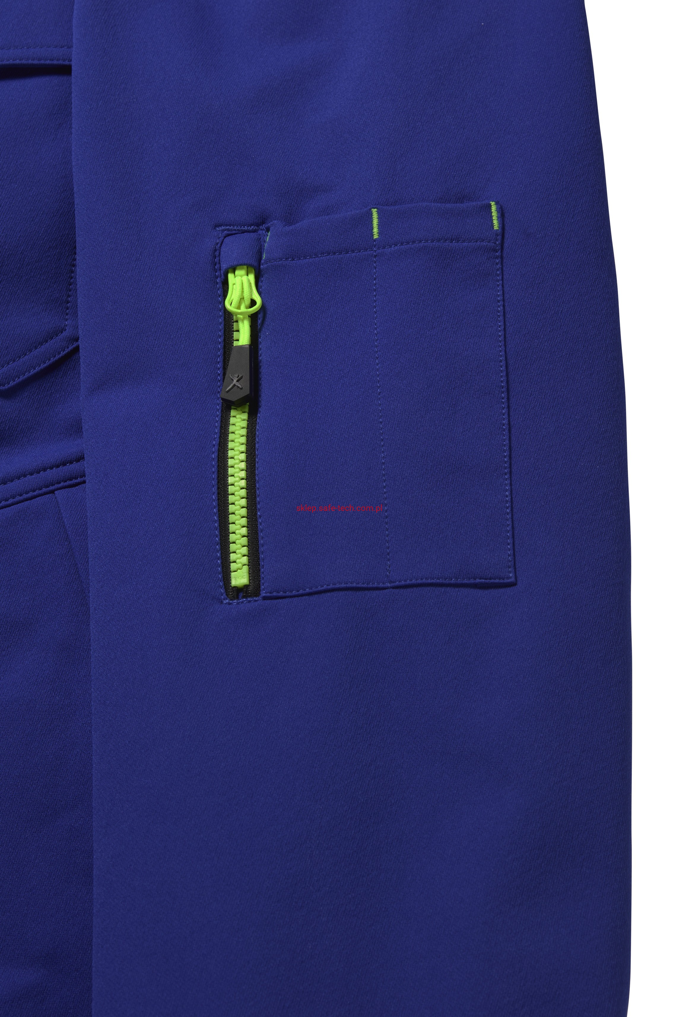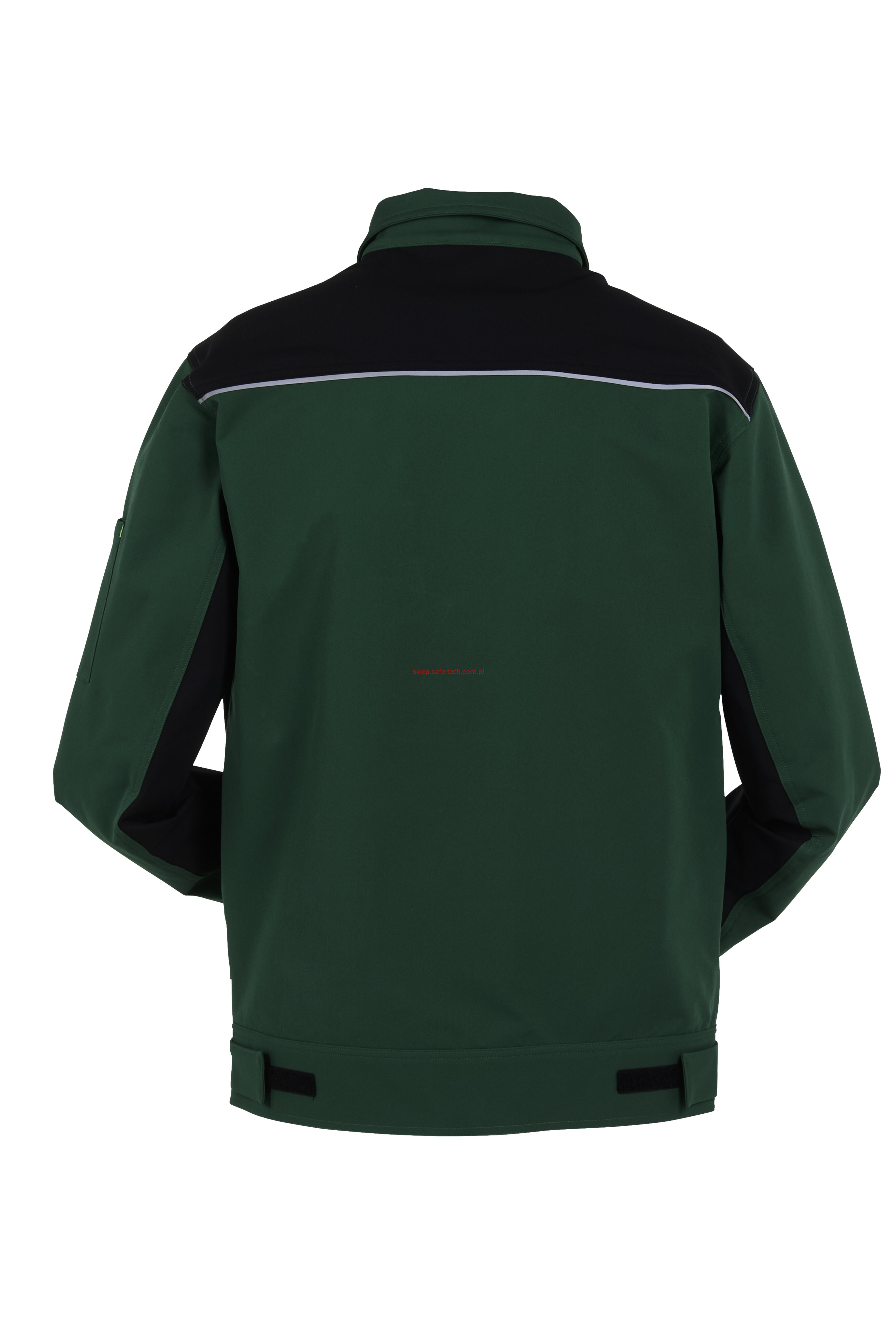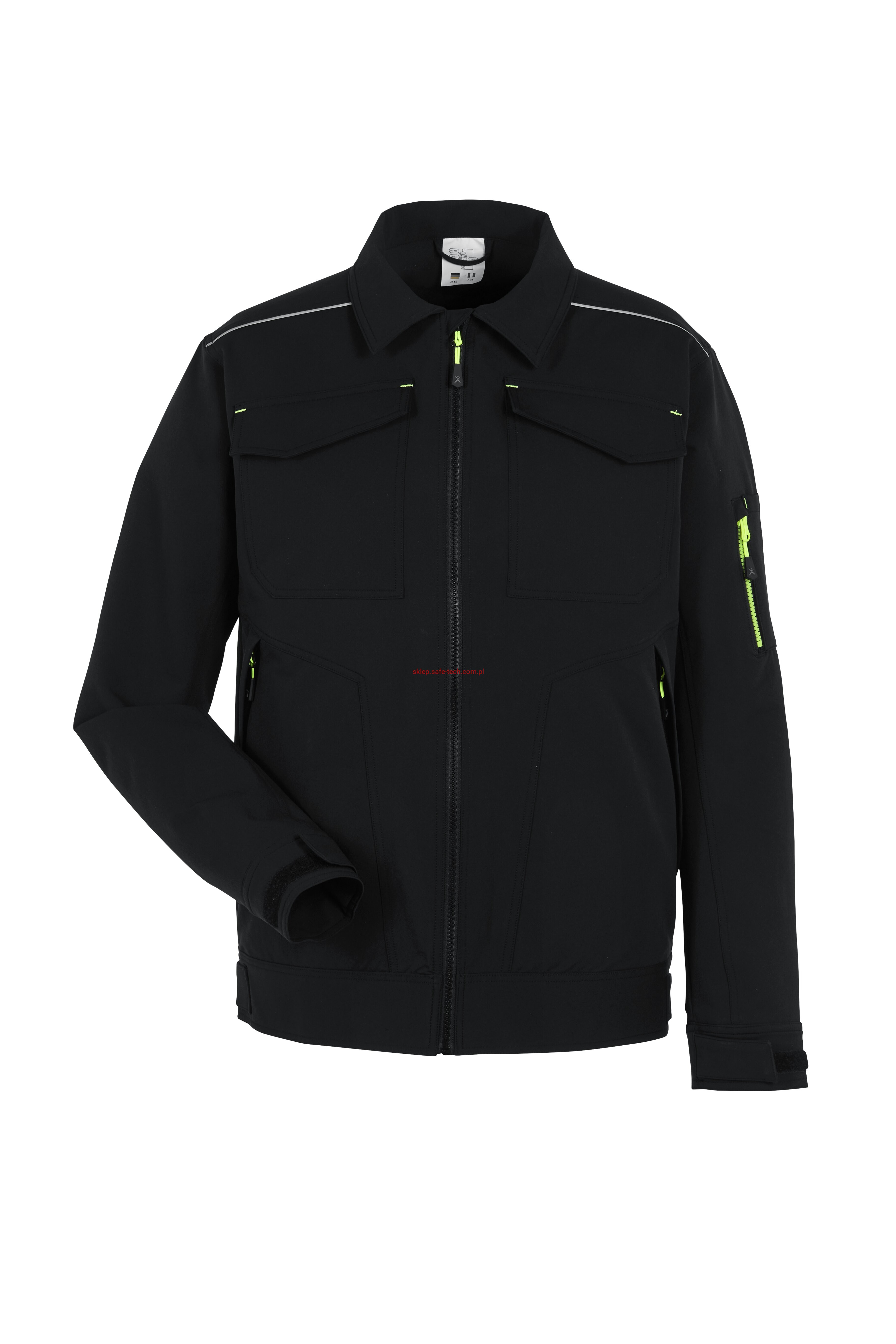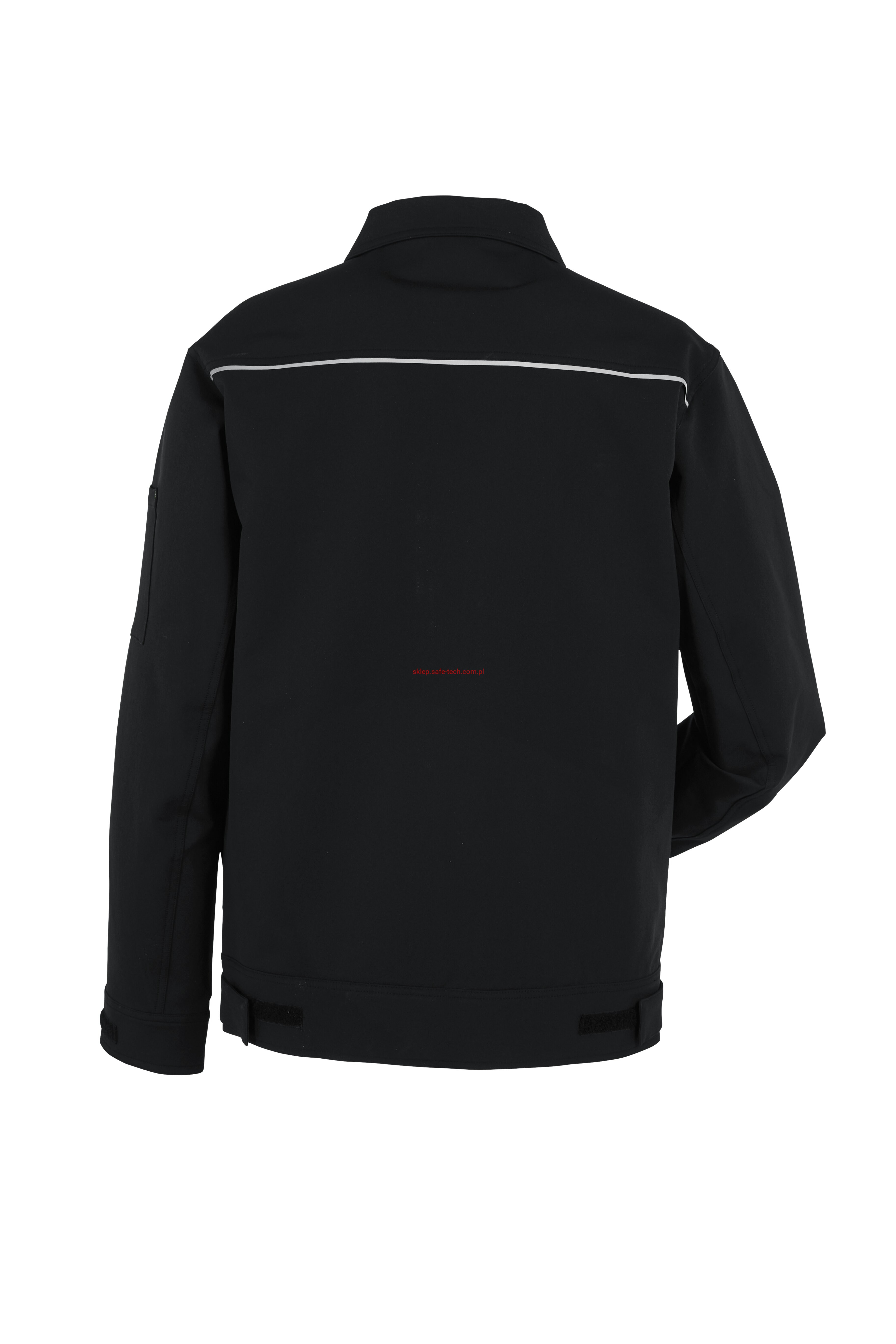 - z przodu kryty zamek błyskawiczny, 2 kieszenie na piersi z patką, 2 naszyte boczne kieszenie z zamkiem błyskawicznym, odblaskowe lamówki na ramionach i plecach, kieszeń na lewym rękawie z zamkiem błyskawicznym i 2 przegródkami na długopisy, regulowane mankiety i pas z zapięciem na rzepy.