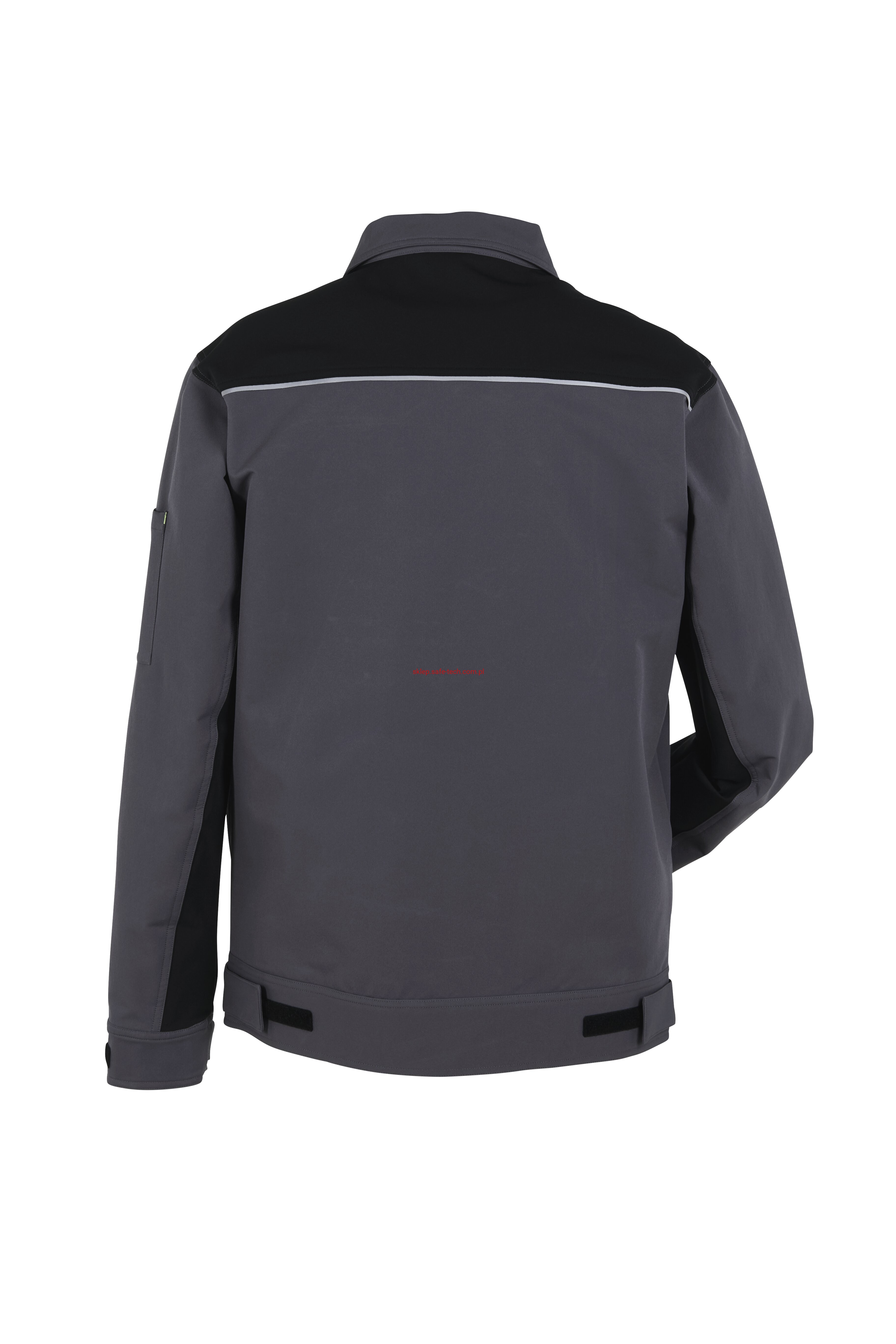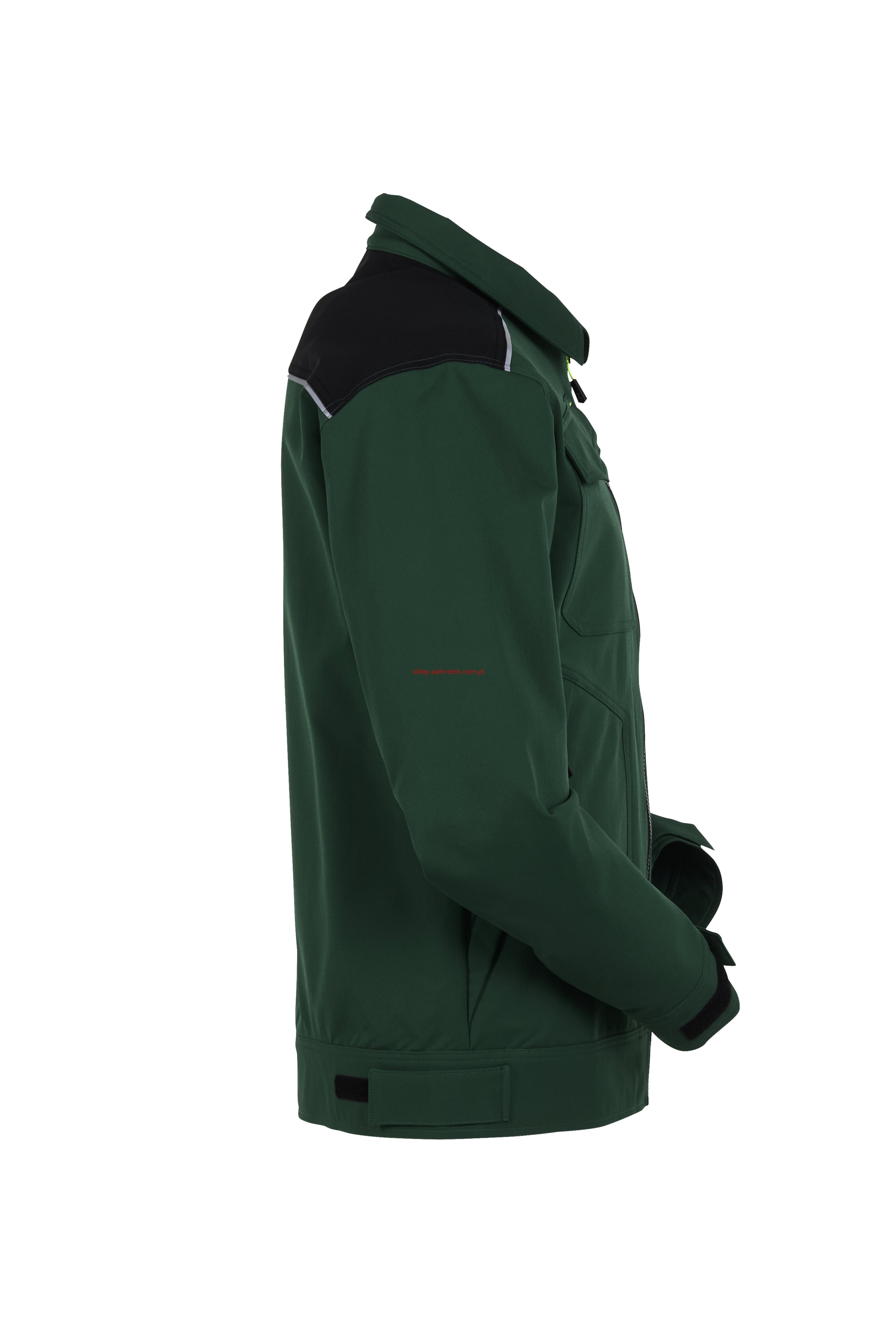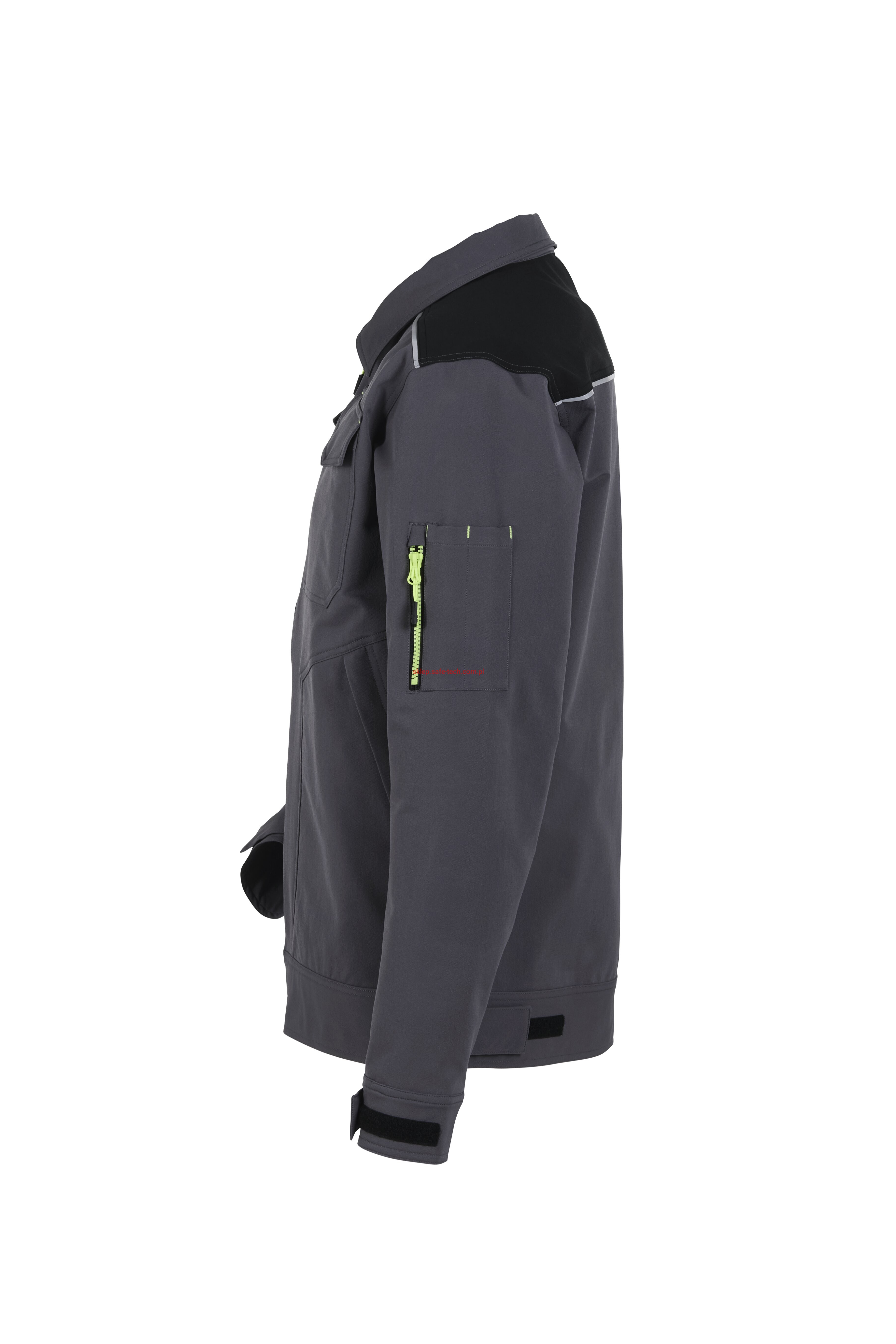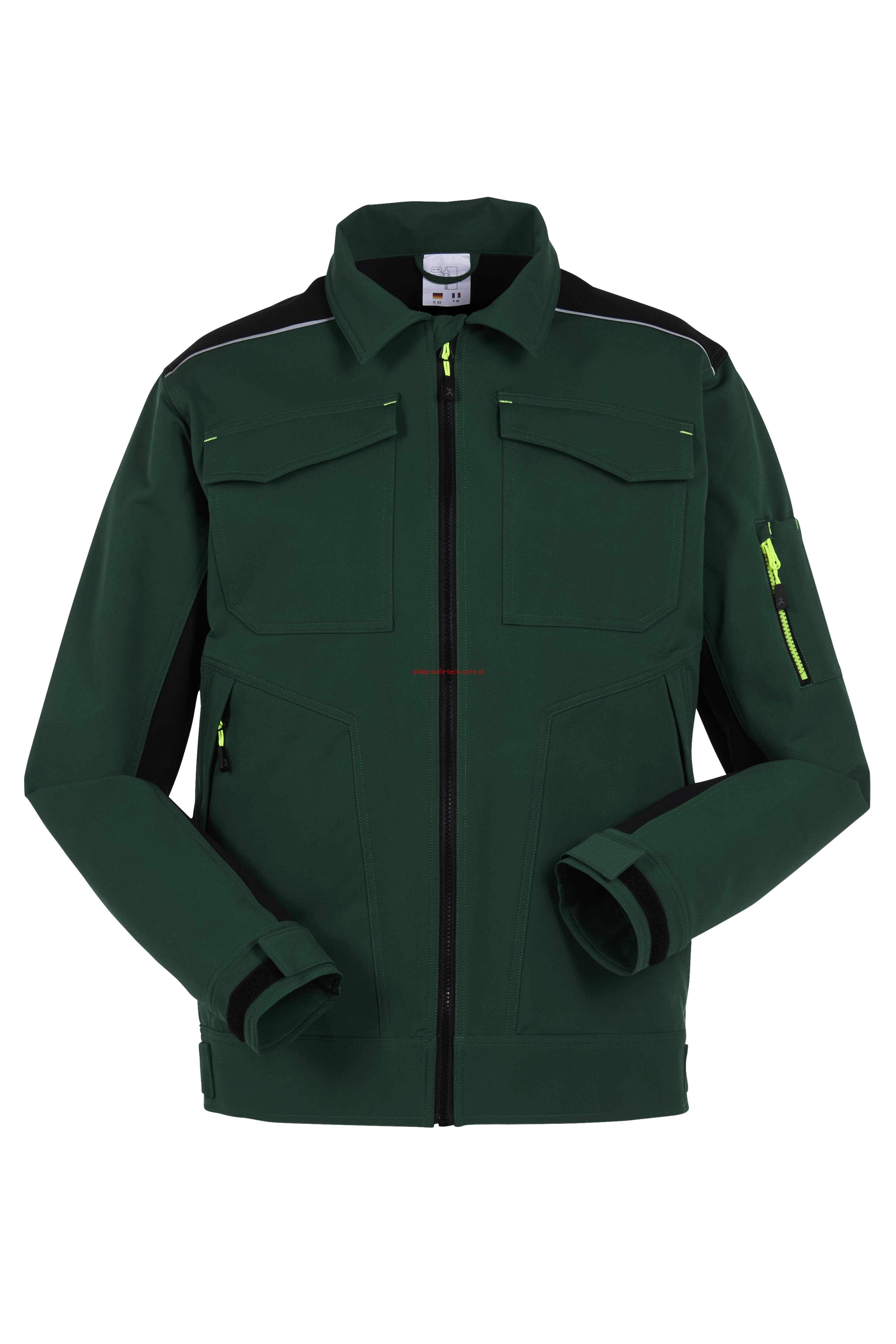 - z przodu kryty zamek błyskawiczny, 2 kieszenie na piersi z patką, 2 naszyte boczne kieszenie z zamkiem błyskawicznym, odblaskowe lamówki na ramionach i plecach, kieszeń na lewym rękawie z zamkiem błyskawicznym i 2 przegródkami na długopisy, regulowane mankiety i pas z zapięciem na rzepy.