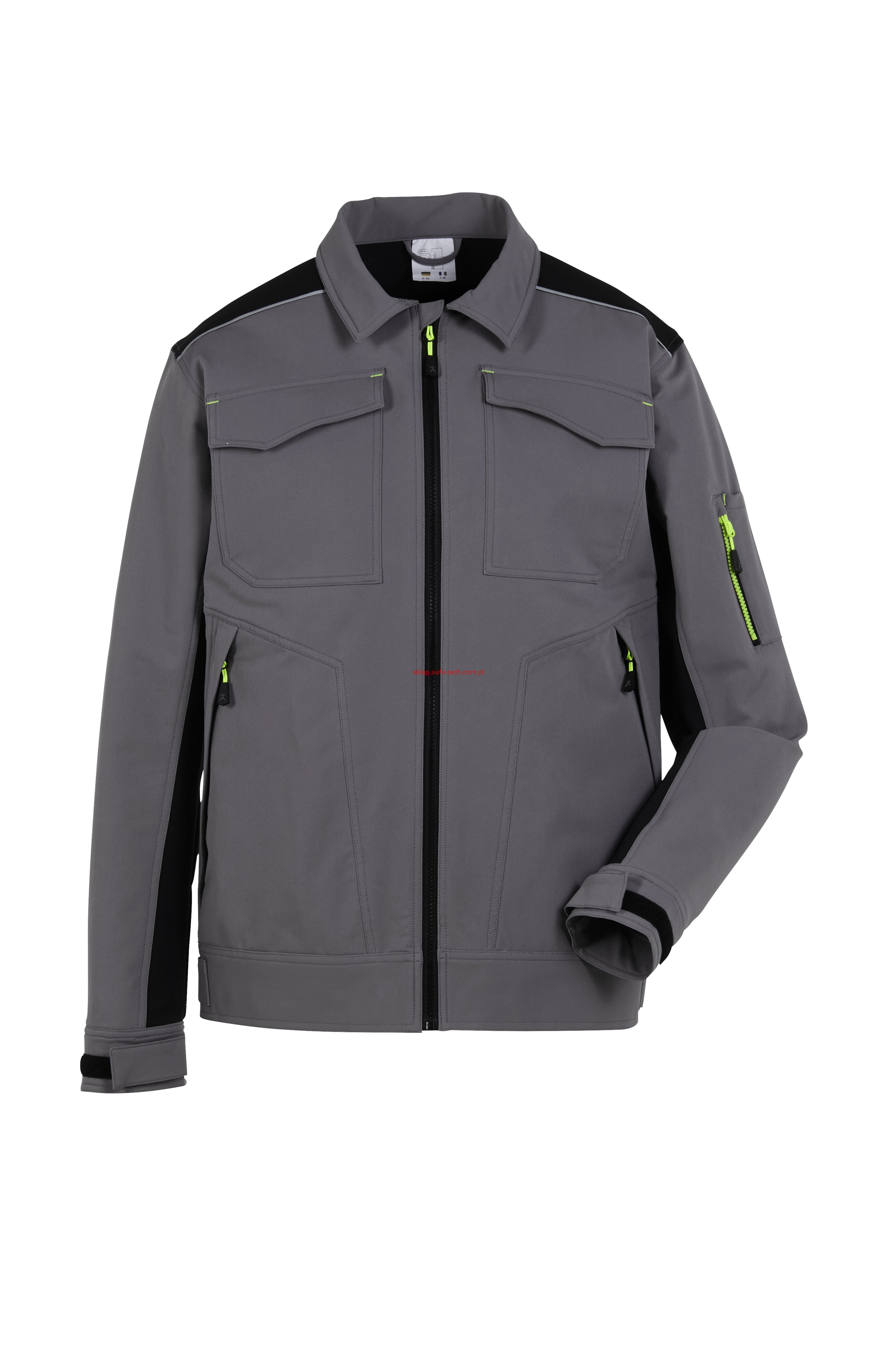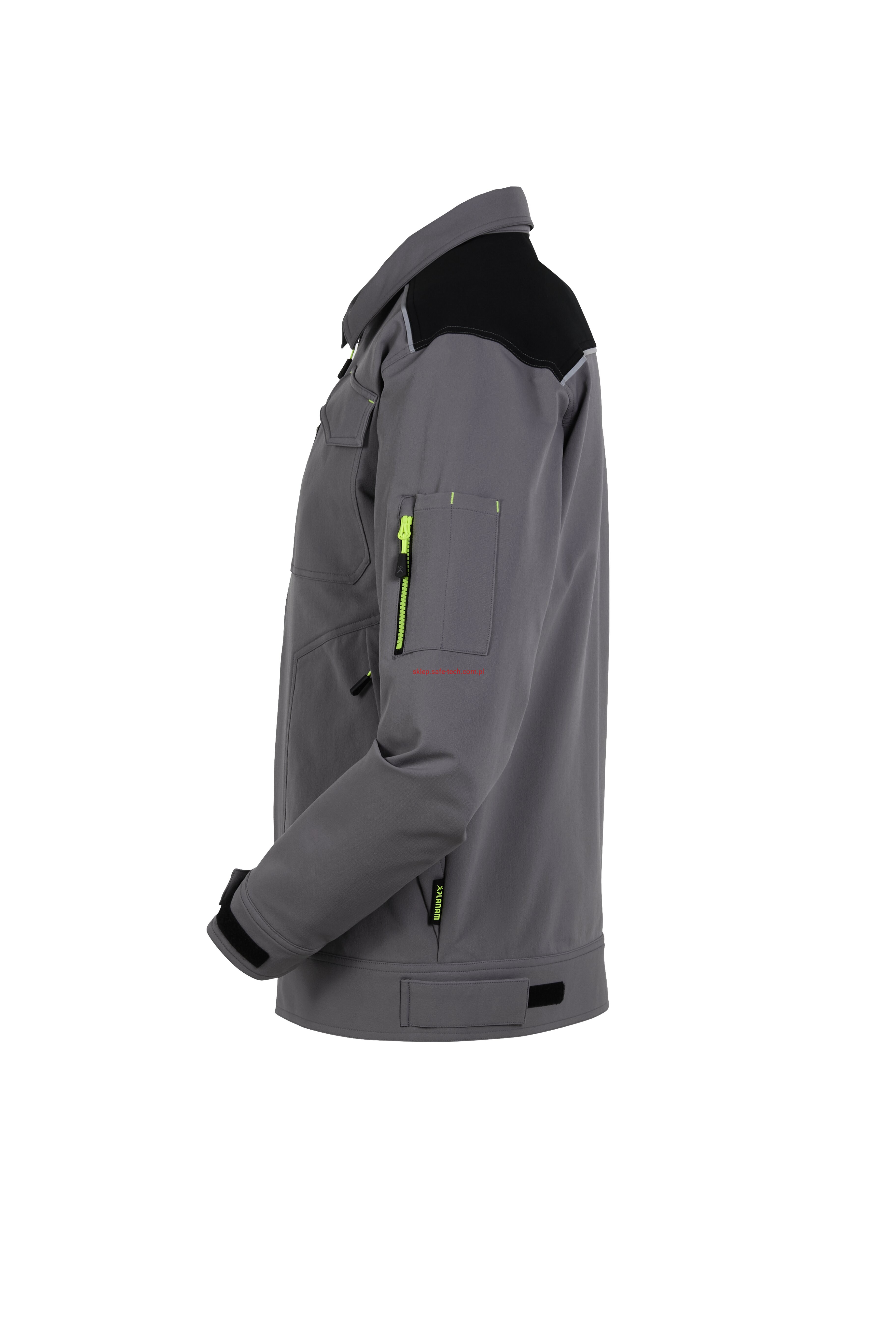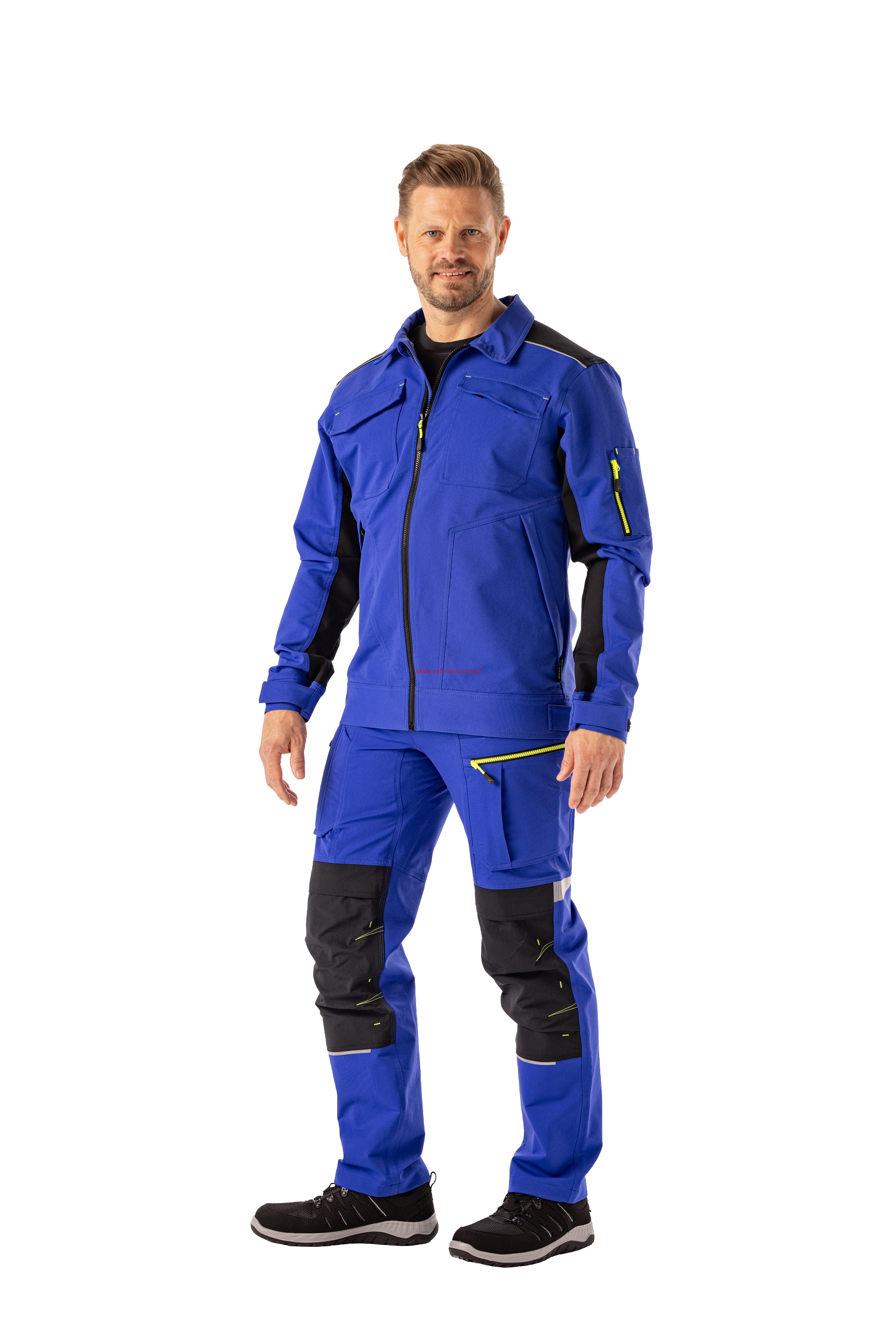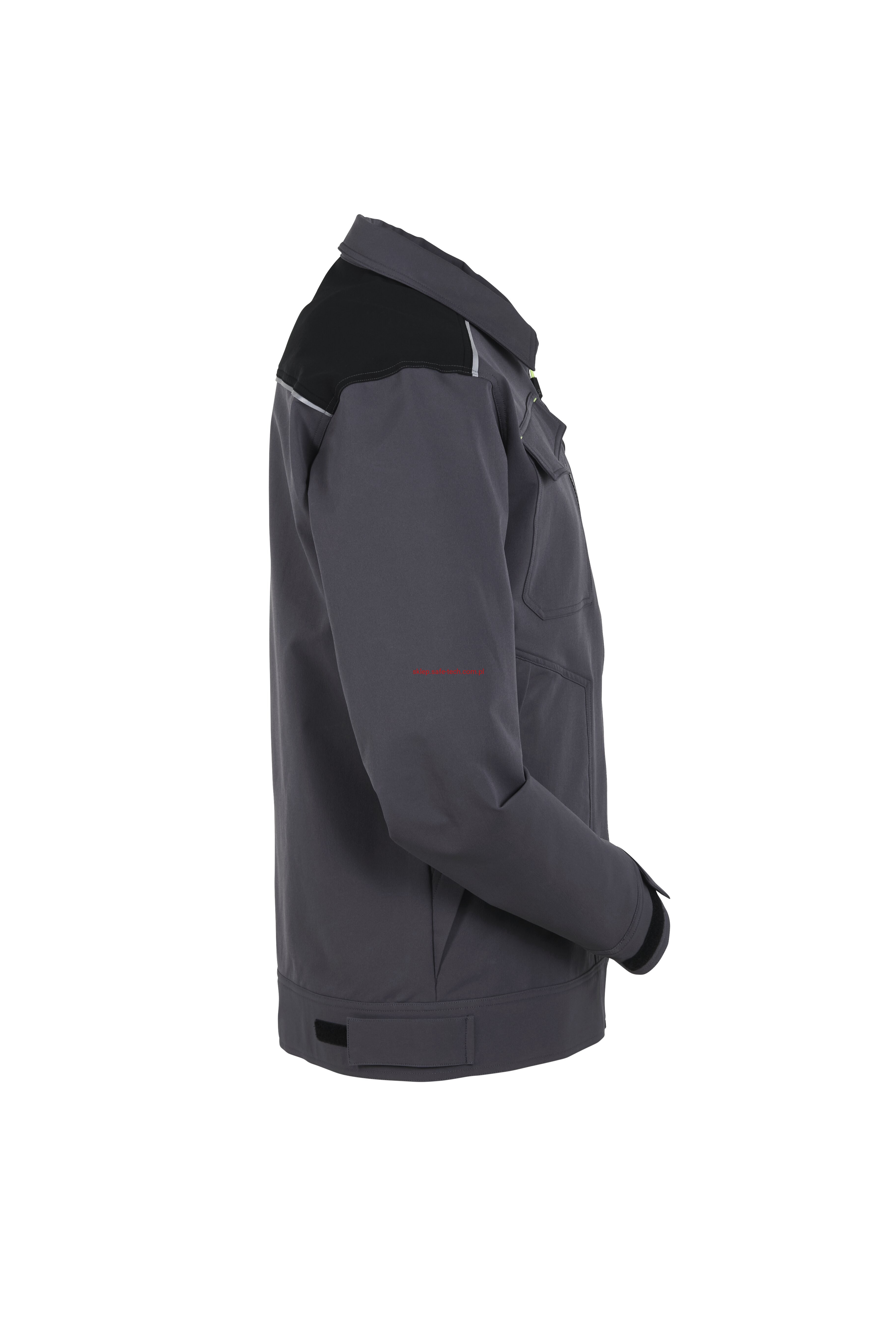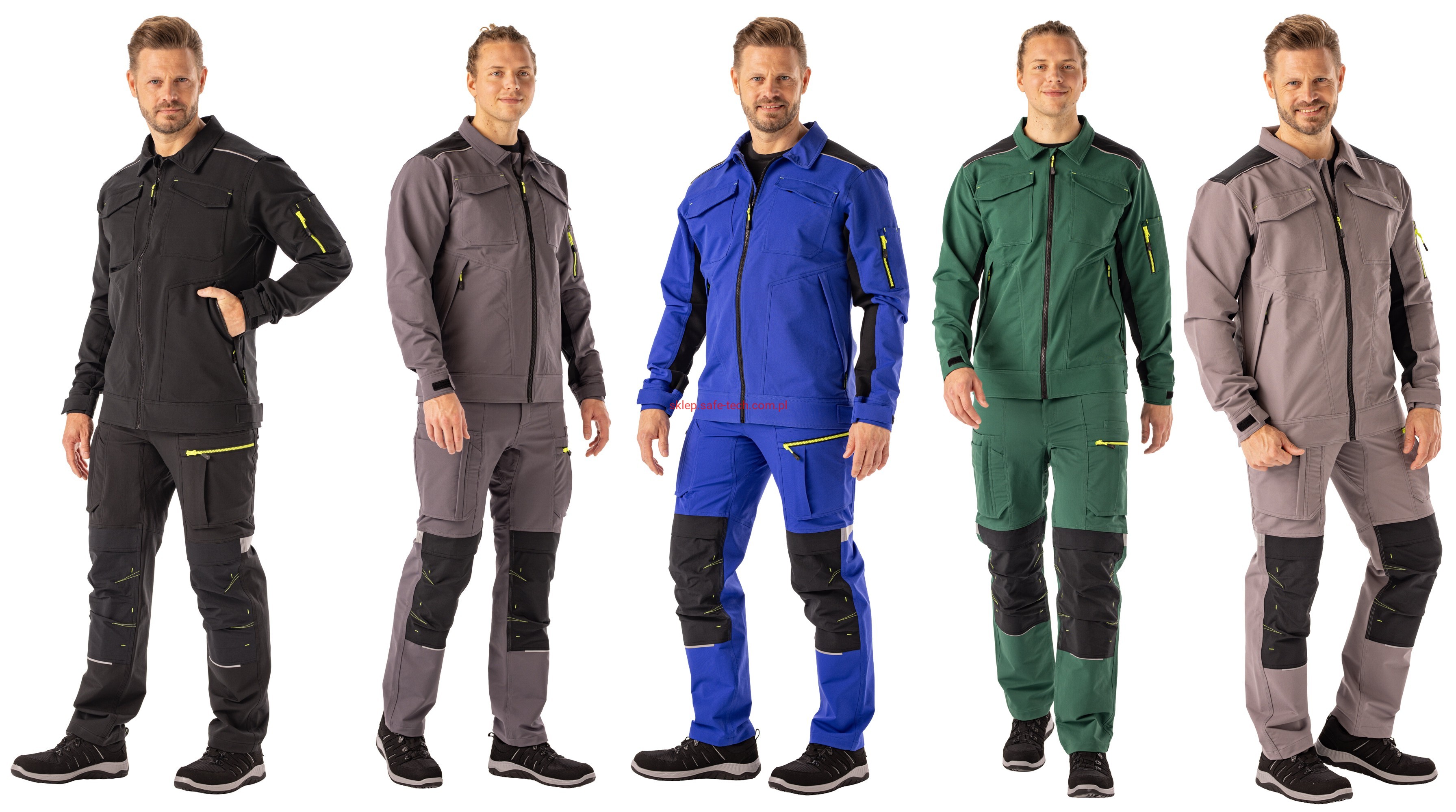 - z przodu kryty zamek błyskawiczny, 2 kieszenie na piersi z patką, 2 naszyte boczne kieszenie z zamkiem błyskawicznym, odblaskowe lamówki na ramionach i plecach, kieszeń na lewym rękawie z zamkiem błyskawicznym i 2 przegródkami na długopisy, regulowane mankiety i pas z zapięciem na rzepy.