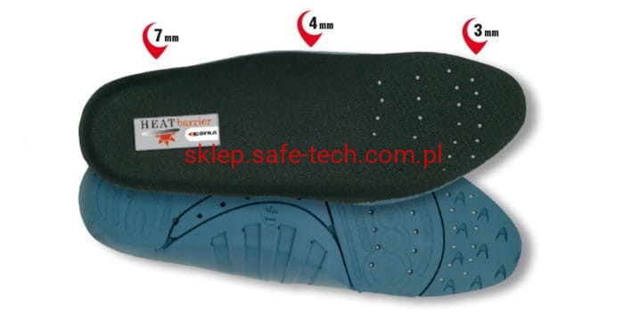 - wyściółka HEAT BARRIER z miękiego PU, anatomiczna o zróżnicowanej grubości (7 - 4 - 3 mm), antystatyczna, dobrze izolująca od wysokich temperatur, dziurkowana