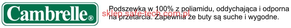 - podszewka oddychająca CAMBRELLE®, wykonana w 100% z poliamidu, antybakteryjna, dobrze pochłaniająca i odprowadzająca wilgoć, odporna na przetarcia