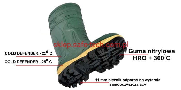 - podeszwa w części wewnętrznej z PU Cold Defender odporna na temp. do - 250C, antybakteryjna