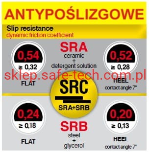 - podeszwa antypoślizgowa (SR - podłoże ceramiczne + gliceryna)
