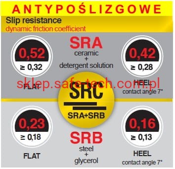 - podeszwa z PU podwójnej gęstości, antypoślizgowa, bardzo dobrze tłumiąca uderzenia (superlative shock absorber)
