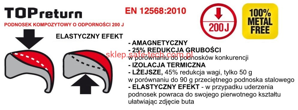- stabilizator z poliwęglanu i włókna szklanego w podeszwie zapobiegający jej skręcaniu i zginaniu w części śródstopia