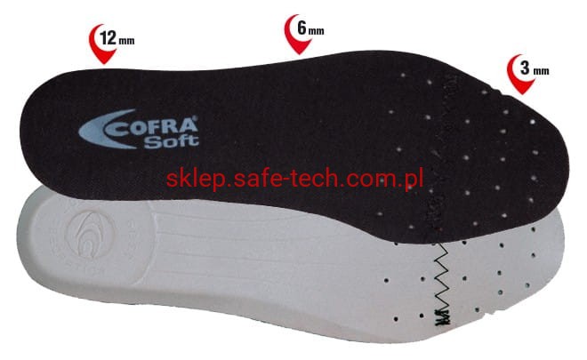 - wyściółka poduszkowa COFRA SOFT, wykonana z bardzo miękkiego poliuretanu, anatomiczna o zróżnicowanej grubości (12 - 6 - 3 mm), wymienna, antyelektrostatyczna, dziurkowana