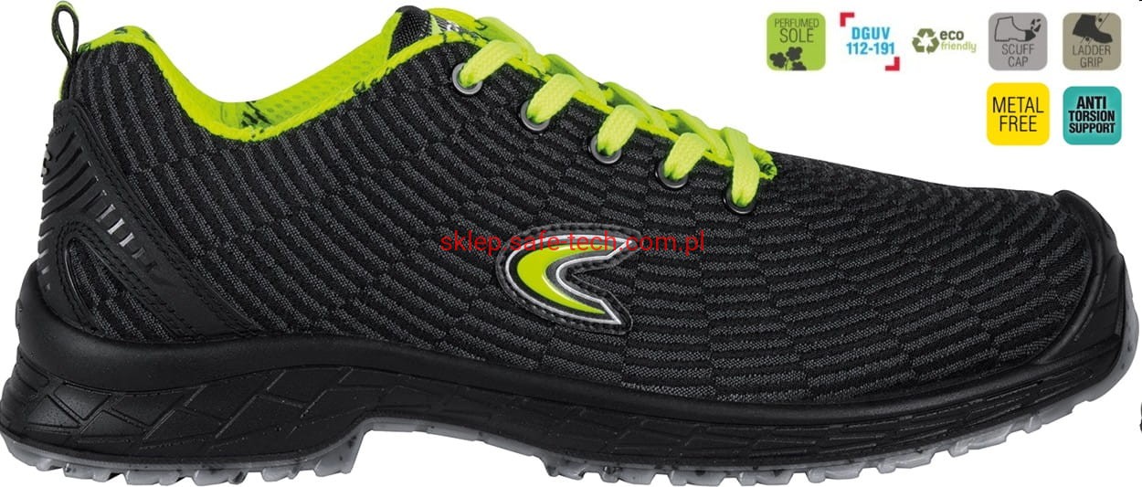 - podeszwa z PU/TPU (poliuretan w części środkowej, poliuretan termoplastyczny w części zewnętrznej) o niskiej rezystencji elektrycznej i bardzo dobrych właściwościach antypoślizgowych