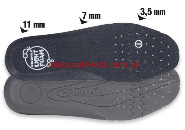 - wymienna wyściółka LIGHT FOAM z bardzo miękkiej pianki poliuretanowej, anatomiczna o zróżnicowanej grubości (11 mm przy pięcie, 7 mm w części środkowej i 3,5 mm przy palcach), zapewnia komfort, dobrą stabilność i absorpcję uderzeń (shock absorber), pochłania pot zapewniając że stopy są suche