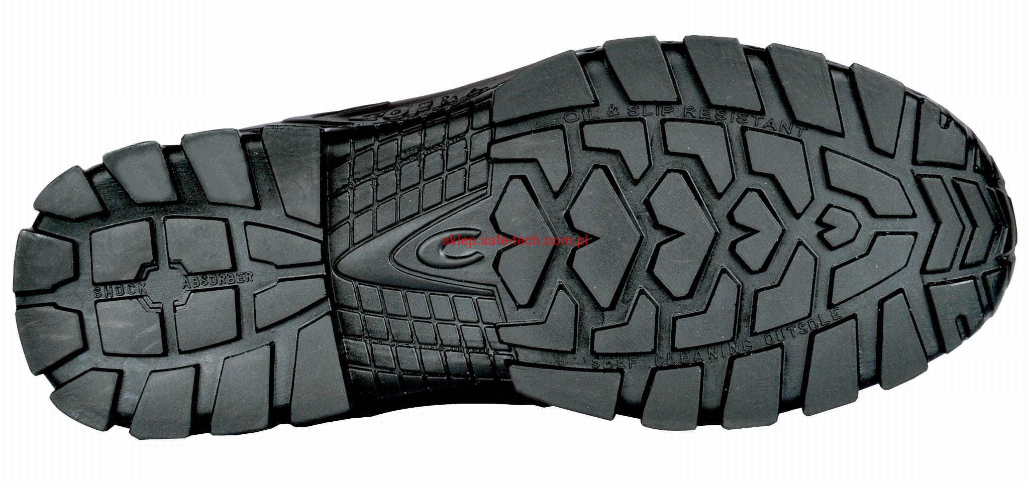 - podeszwa z PU podwójnej gęstości o dobrych właściwościach antypoślizgowych, dobrze tłumiąca uderzenia (shock absorber), zapewnia dobrą stabilność (szeroka), bieżnik samooczyszczający