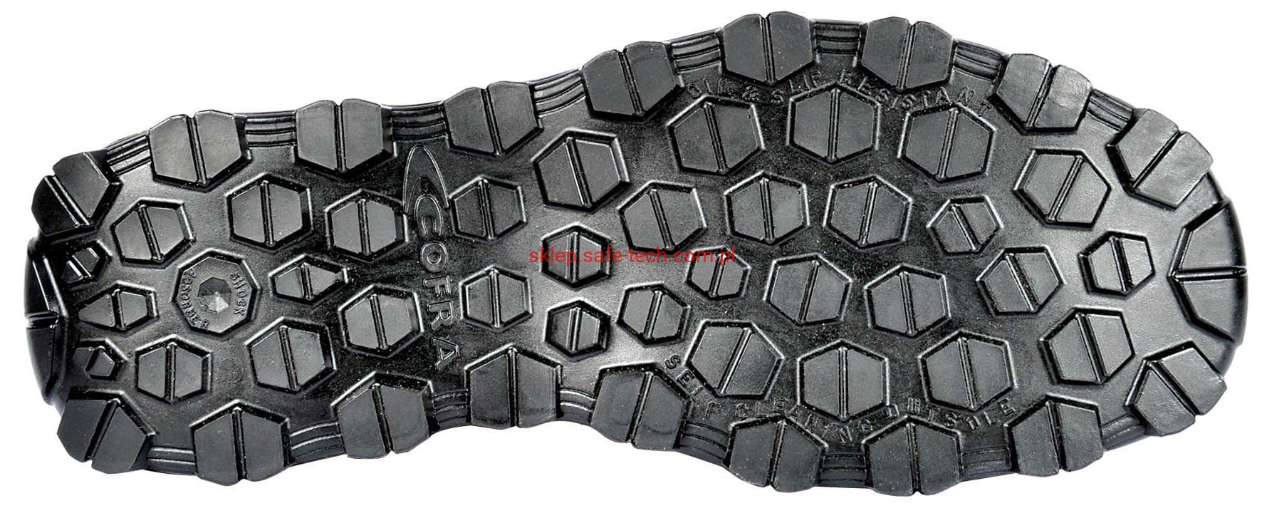 - podeszwa z PU podwójnej gęstości o dobrych właściwościach antypoślizgowych, dobrze tłumiąca uderzenia (shock absorber), zapewnia dobrą stabilność (szeroka), bieżnik samooczyszczający