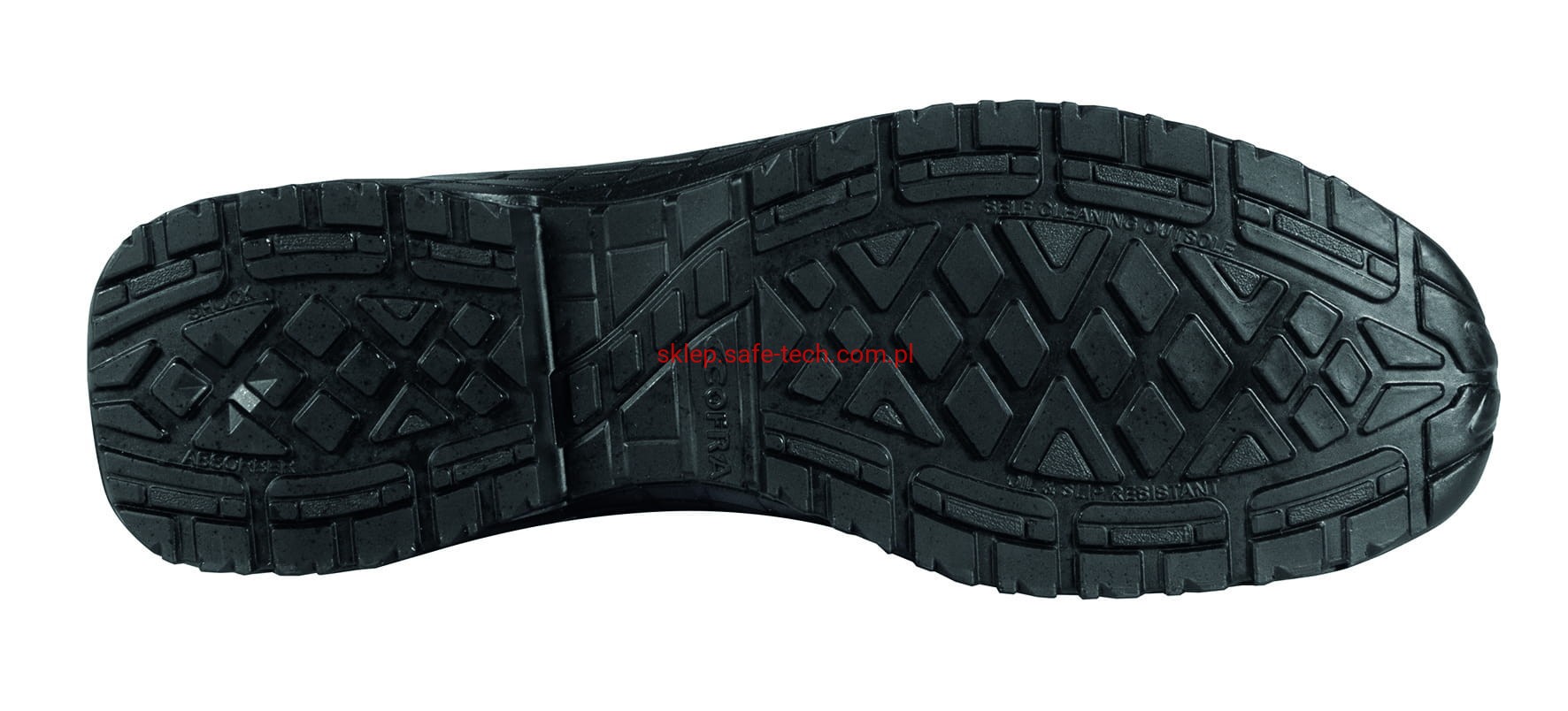 - podeszwa z PU/TPU (poliuretan w części środkowej, poliuretan termoplastyczny w części zewnętrznej) o niskiej rezystencji elektrycznej i bardzo dobrych właściwościach antypoślizgowych