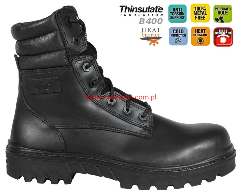 - podeszwa antypoślizgowa z poliuretanu Heat Defender i gumy nitrylowej odpornej na temp. 3000 C (przez 1 minutę), odporna na oleje, węglowodory i kwasy, posiada tłumik drgań (shock absorber), dobrze izolująca od gorąca i zimna (HI CI)