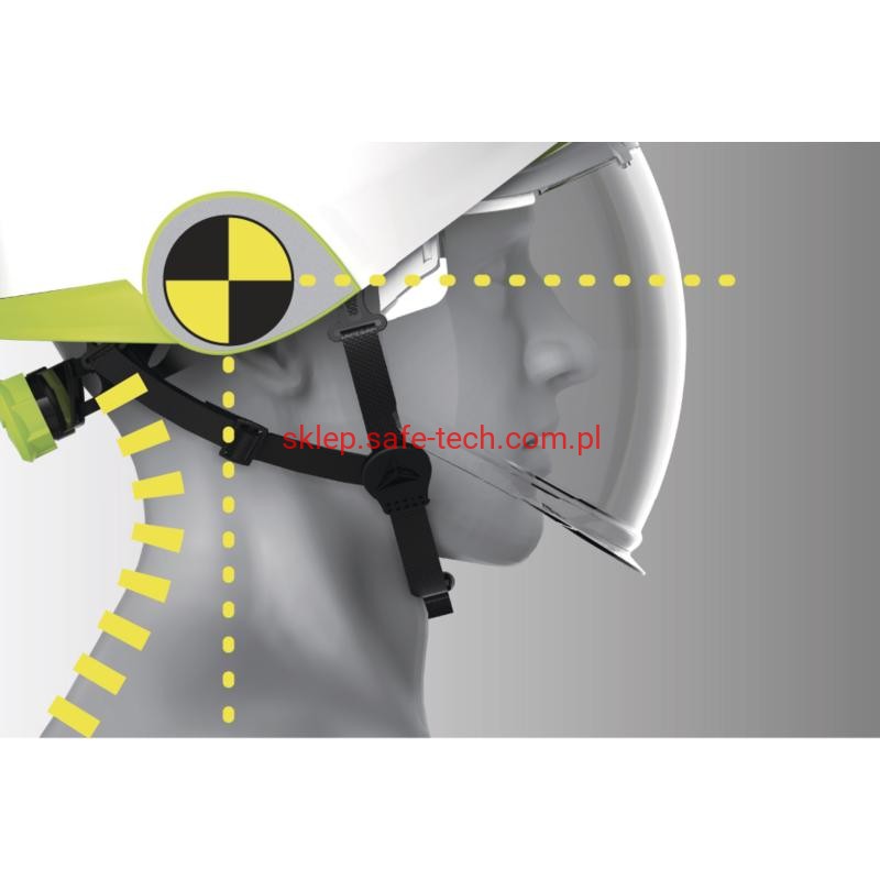 - więźba z poliamidu: 3 taśmy tekstylne z 6 punktami mocowania i więźba regulowana w pozycji góra lub dół (lepsze rozłożenie ciężaru w przypadku uderzenia oraz gwarantowany komfort użytkowania)