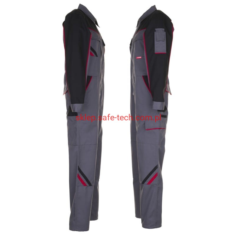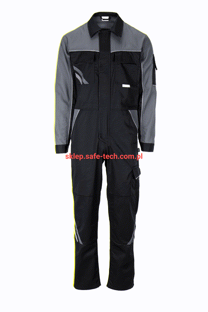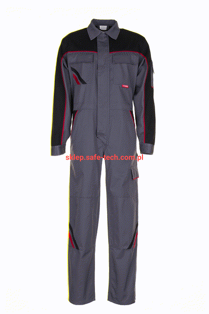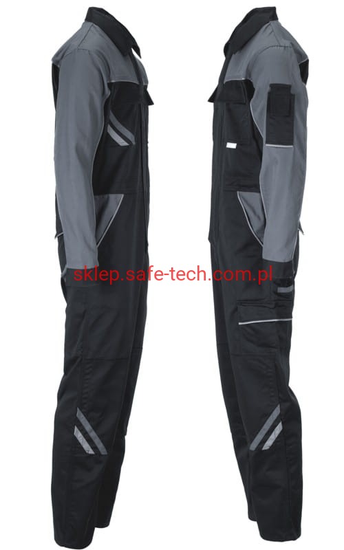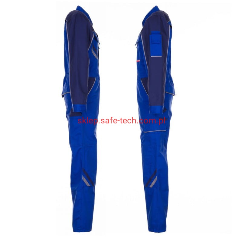 - Kolor kontrastowy: 65% bawełna, 35% poliester, ok. 320 g/m2, tkanina Canvas. splot płócienny2 kieszenie piersiowe z patkami i zapięciem na rzepy, kolorowe aplikacje na prawej kieszeni piersiowej, kieszeń na telefon komórkowy na lewym rękawie, mankiety u rękawów regulowane rzepami, gumka w pasku w talii, zapinany na kryty, dwukierunkowy suwak z przodu, 2 zakładki na plecach, 2 wszyte duże kieszenie, 2 naszyte kieszenie kolanowe z kolorowymi aplikacjami, podwójna kieszeń na metrówkę, kieszeń na telefon komórkowy, kieszeń na lewym udzie z patką i na rzepy, 2 kieszenie tylne z patkami, kolorowe naszywki na karczku, przy rękawach i jako wykończenie patek i kieszeni.