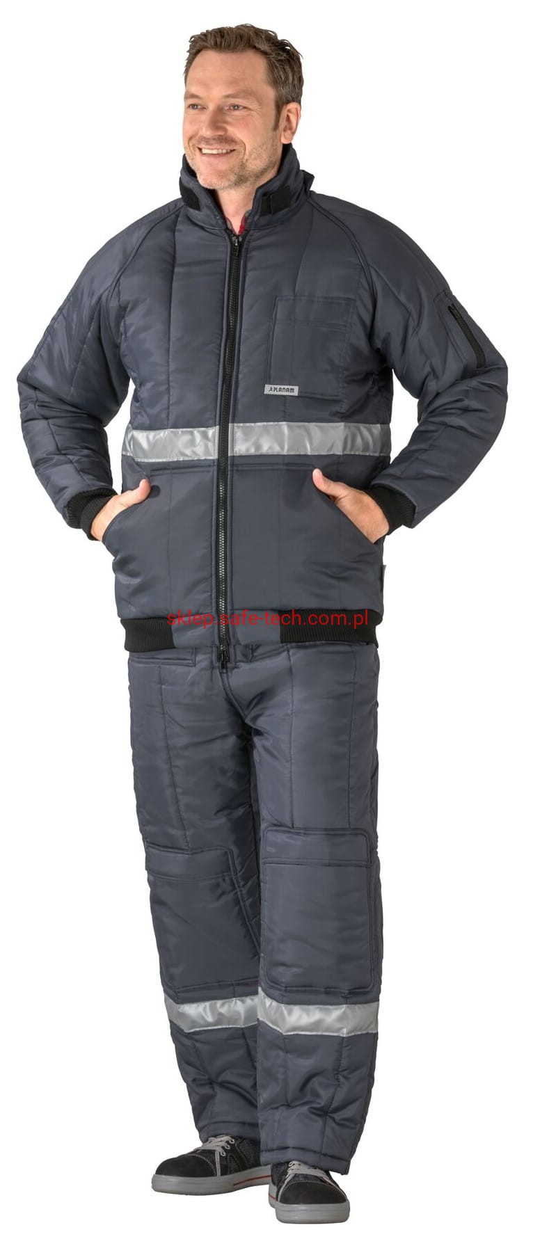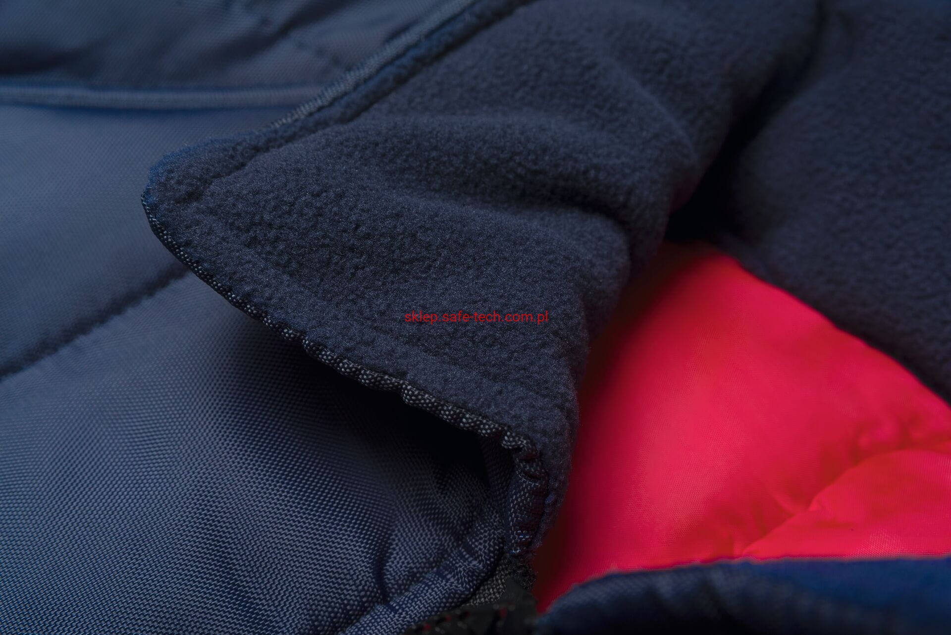 - kryty zamek błyskawiczny z przodu na całej długości, 1 kieszeń po lewej stronie na piersi, 2 boczne kieszenie, kieszeń na rękawie po lewej stronie z zamkiem błyskawicznym, taśma odblaskowa w pasie, ściągacze z dzianiny przy rękawach i w pasie. Przyjemne do noszenia polarowe wykończenie szyi.