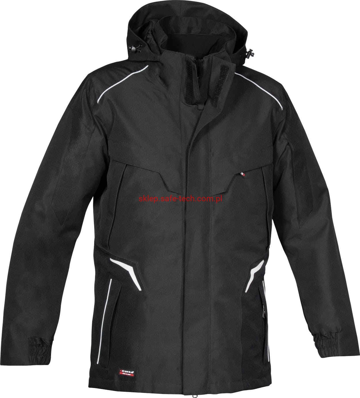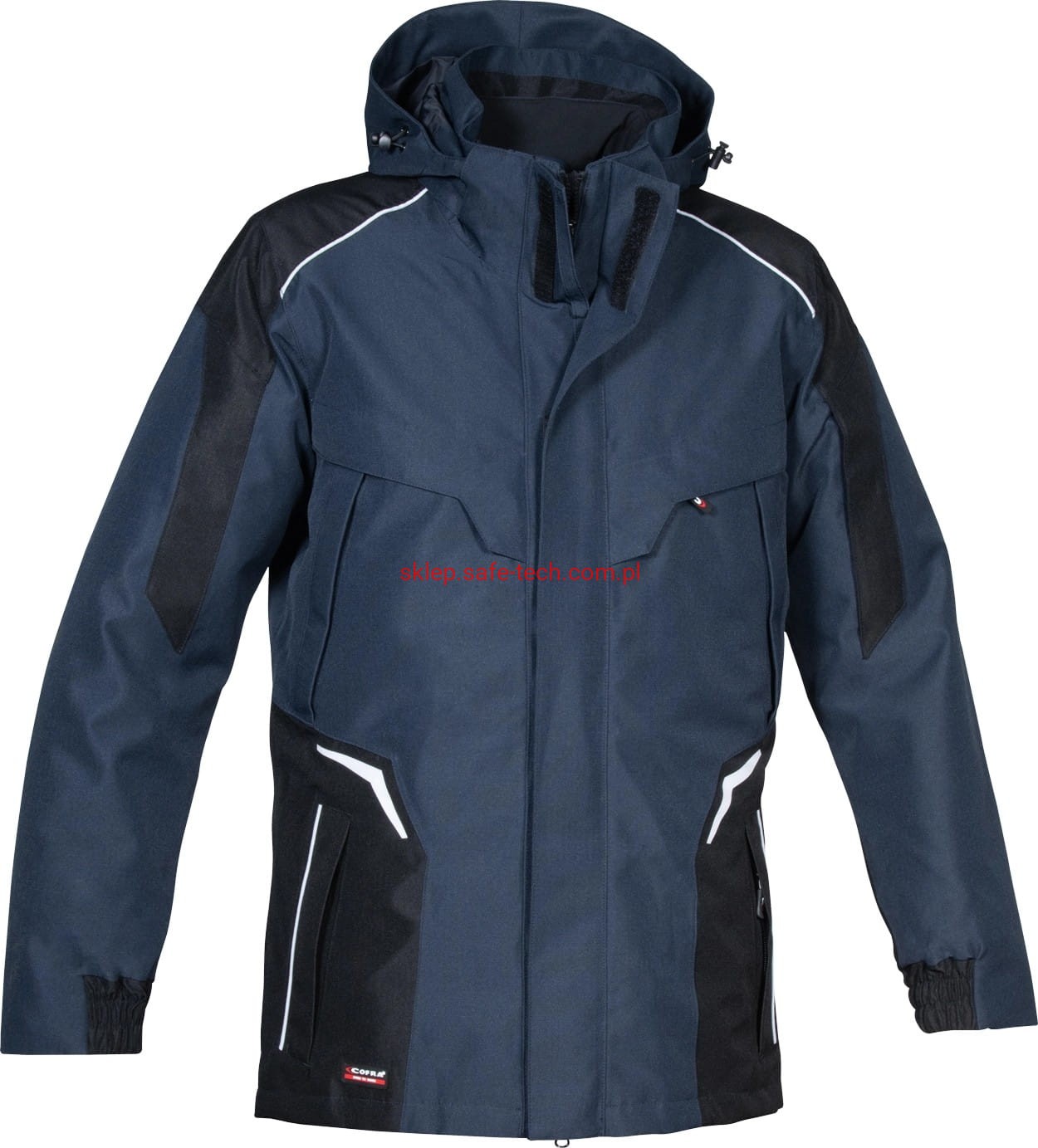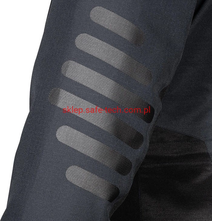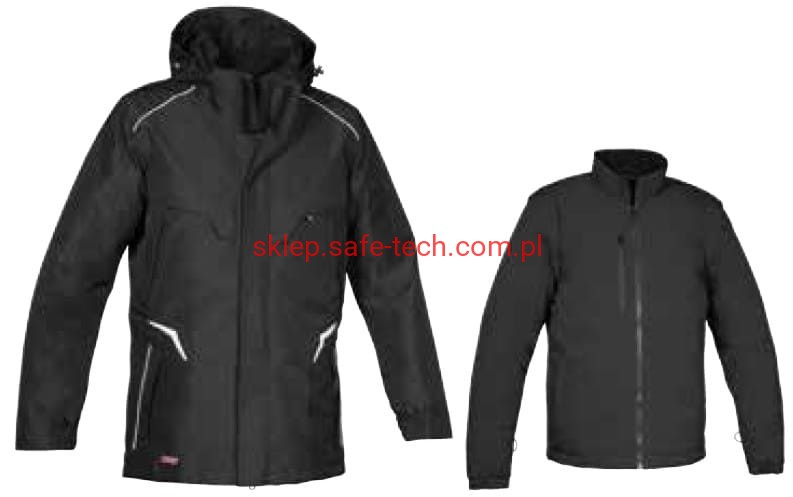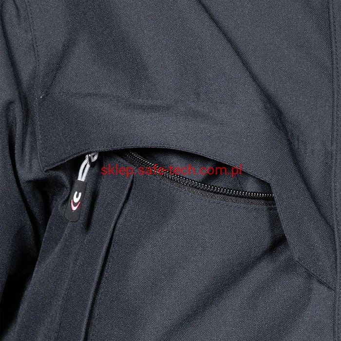 - Opis części zewnętrznej:1 kieszeń na lewym rękawie zapinana na zamek, 2 kieszenie wewnętrzne, w tym jedna zapinana na zamek, 2 kieszenie na piersi, jedna kieszeń na telefon komórkowy z tkaniny E-WARD, ergonomiczna konstrukcja w obszarze ramion, szwy zgrzewane termicznie, wstawki odblaskowe, wewnętrzny zamek błyskawiczny u dołu, odpinany, regulowany kaptur, wzmacniana tkanina ripstop, 2 szerokie dolne kieszenie z zamkiem błyskawicznym, gumowe wkładki na łokieć odporne na ścieranie, elastyczne mankiety wewnętrzne, podwójna listwa ochronna zamka błyskawicznego, podszewka z siateczki zapewnia lepszą oddychalność, tylna część wykonana z elastycznej tkaniny zapewniającej maksymalną swobodę ruchów, kieszenie z funkcją ocieplania rąk.
