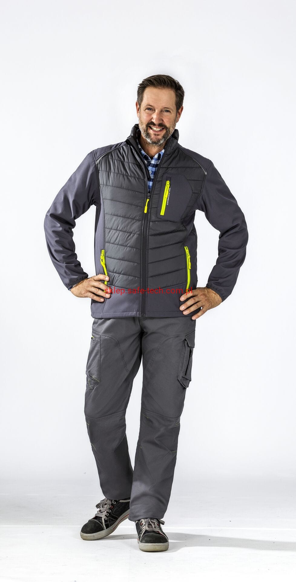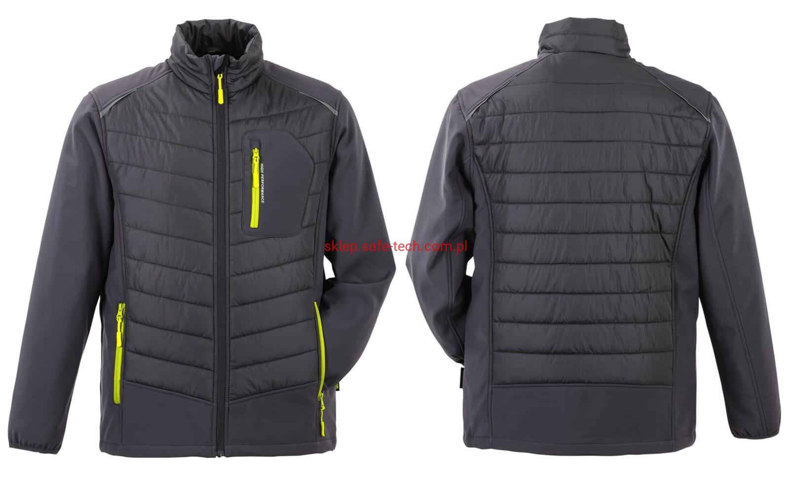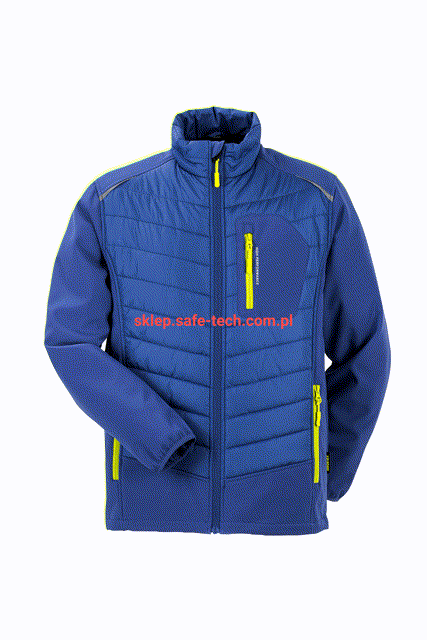 - 2 kieszenie boczne z żółtym zamkiem błyskawicznym, kieszeń na piersi po lewej stronie z żółtym zamkiem błyskawicznym i wstawką odblaskową, przedni zamek, ochraniacz podbródka z polaru, ochraniacz podbródka z polaru, mankiety podszyte miękkim polarem