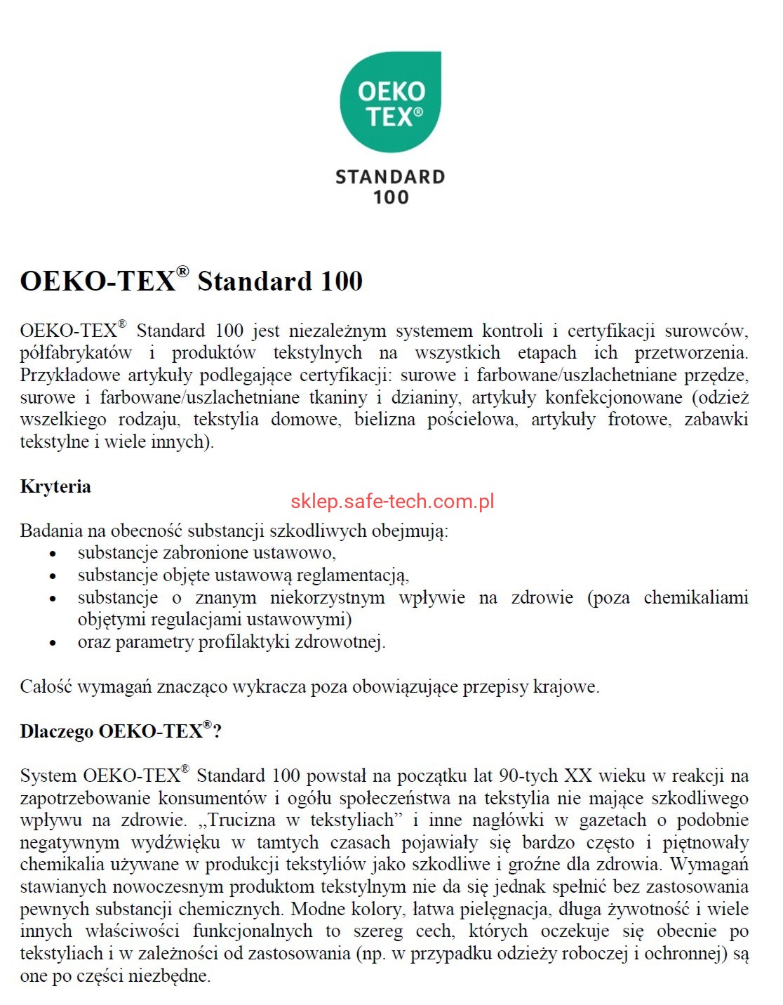 | Rodzaj materiału | 94 % poliester recyklingowany, 6% elastan (membrana TPU) |