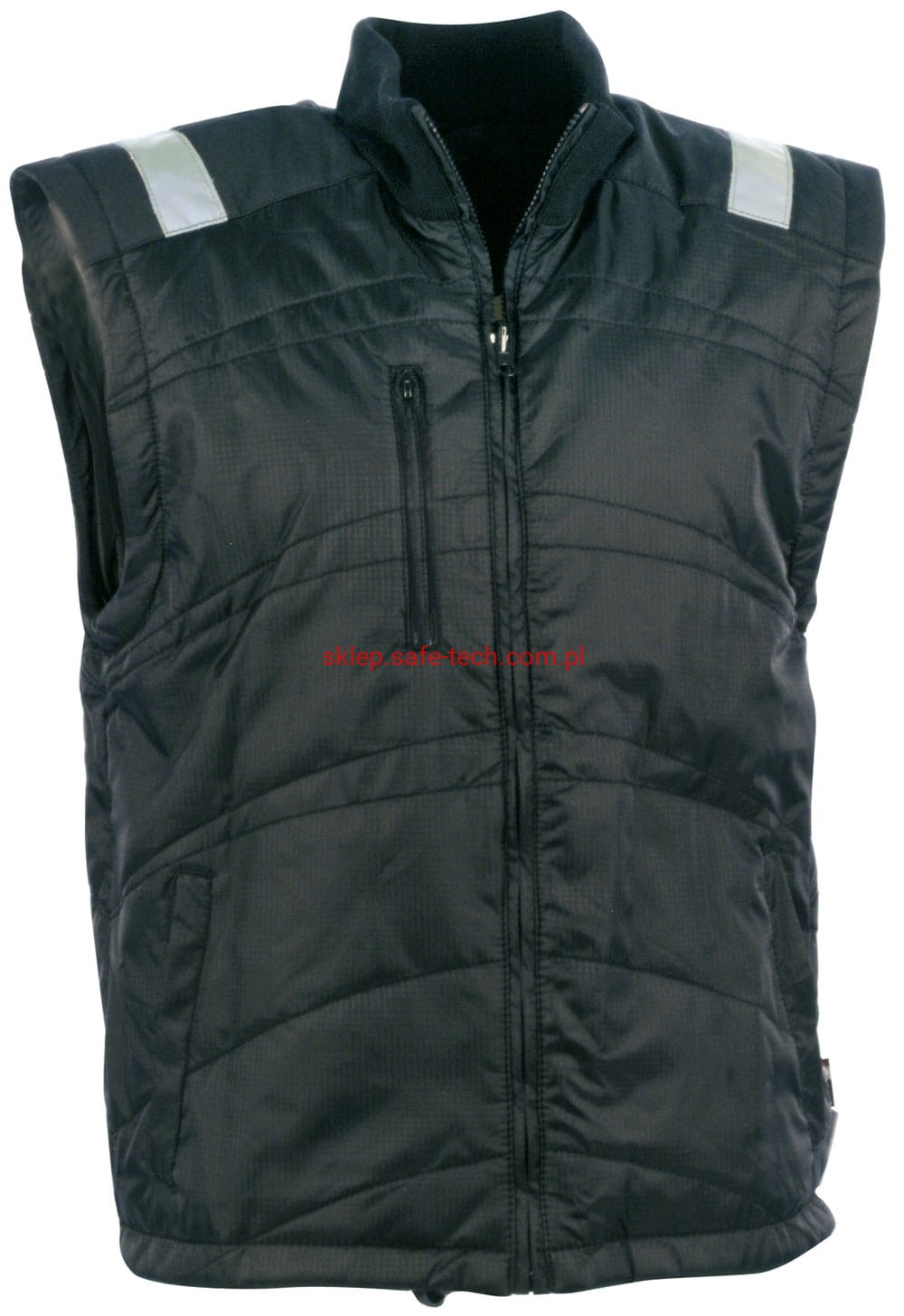 - w części wewnętrznej: 1 kieszeń na piersi na zamek, 2 szerokie kieszenie przednie na rzep, odpinane rękawy na zamek, wstawki odblaskowe, zamek YKK