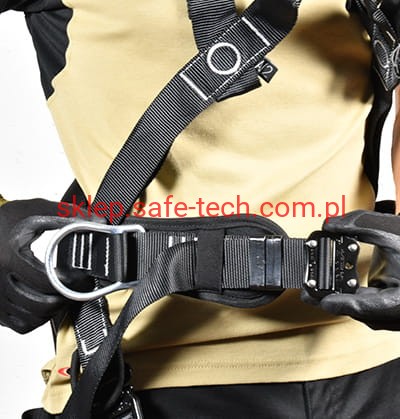 - wyposażony w szybką klamrę automatyczną (Quick release bucklet) wykonaną z kutej stali oraz 2 boczne punkty mocowania składane (Reverse-D) ze stali galwanizowanej