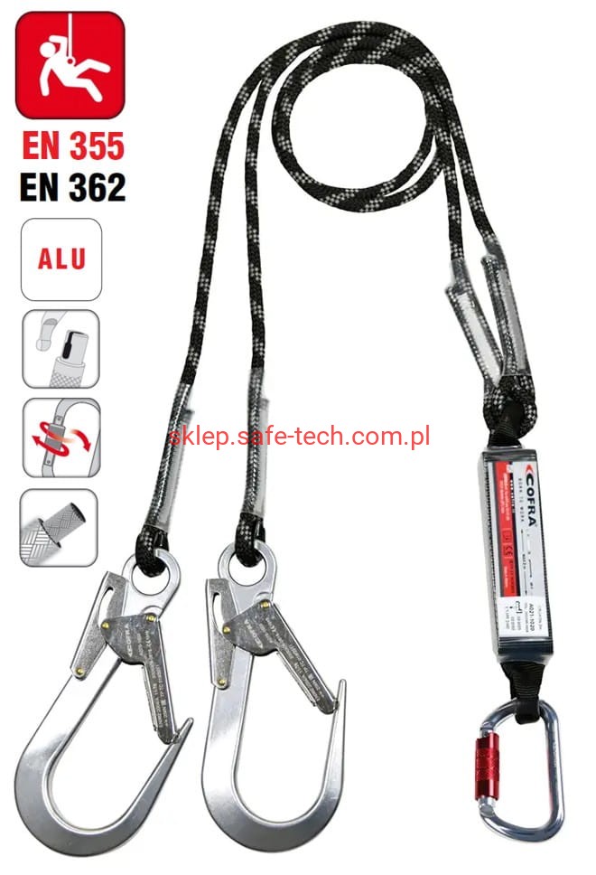 Podwójna lina bezpieczeństwa z amortyzatorem Cofra CRUXON