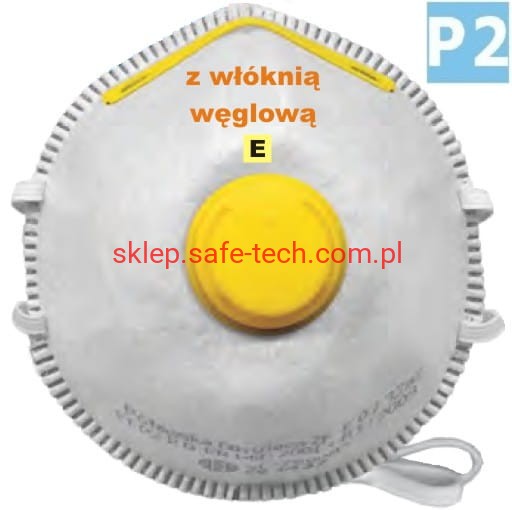 - dzięki włókninie węglowej E półmaska chroni również przed przykrymi zapachami z gazów kwaśnych (dwutlenek siarki, chlorowodór, trójtlenek siarki, kwas mrówkowy, octowy) przy koncentracji do 1 NDS