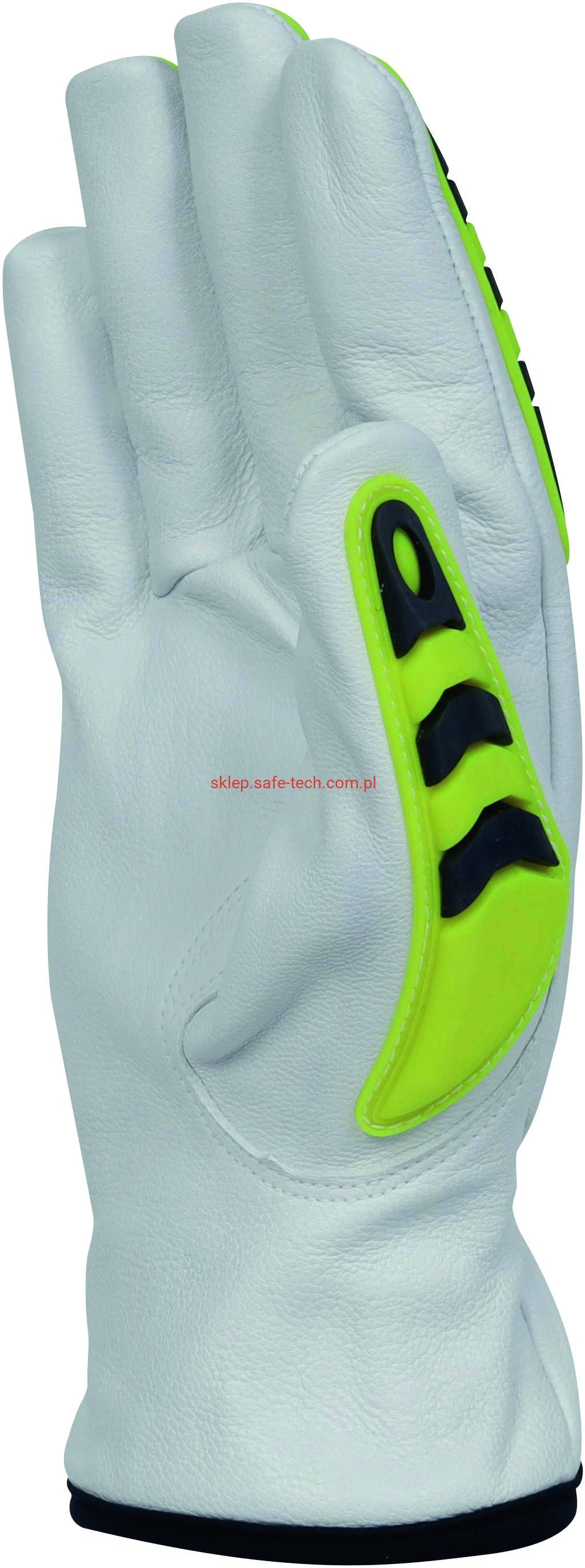 - wykonane ze skóry koziej, do prac ciężkich, z podszewką odporną na przecięcie na poziomie F, zapewniające komfort, ochronę i oddychalność. Wkład: cięty zszywany, materiał: nylon - spandex - włókno stalowe. Wzmocnienia: Strona grzbietowa palców - Kciuk - Strona grzbietowa. Mankiet otwarty z elastycznym grzbietem. Strona grzbietowa z wstawkami PVC do ochrony przed uderzeniami.