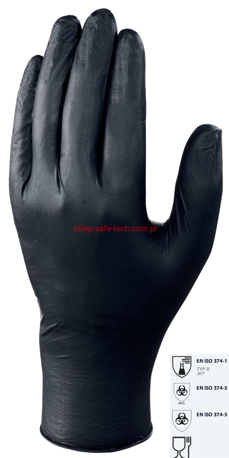 - rękawice jednorazowe, nitrylowe, niepudrowane, chroniące przed czynnikami chemicznymi, poziomy przenikania: