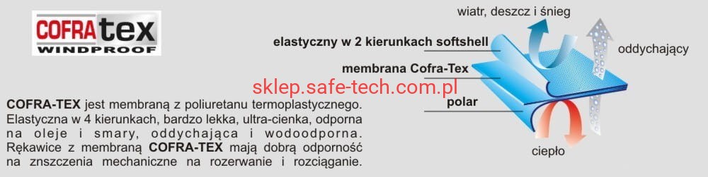 - wykonane z tkaniny softshell i membrany ocieplającej wodoodpornej Cofra-Tex Woterproof