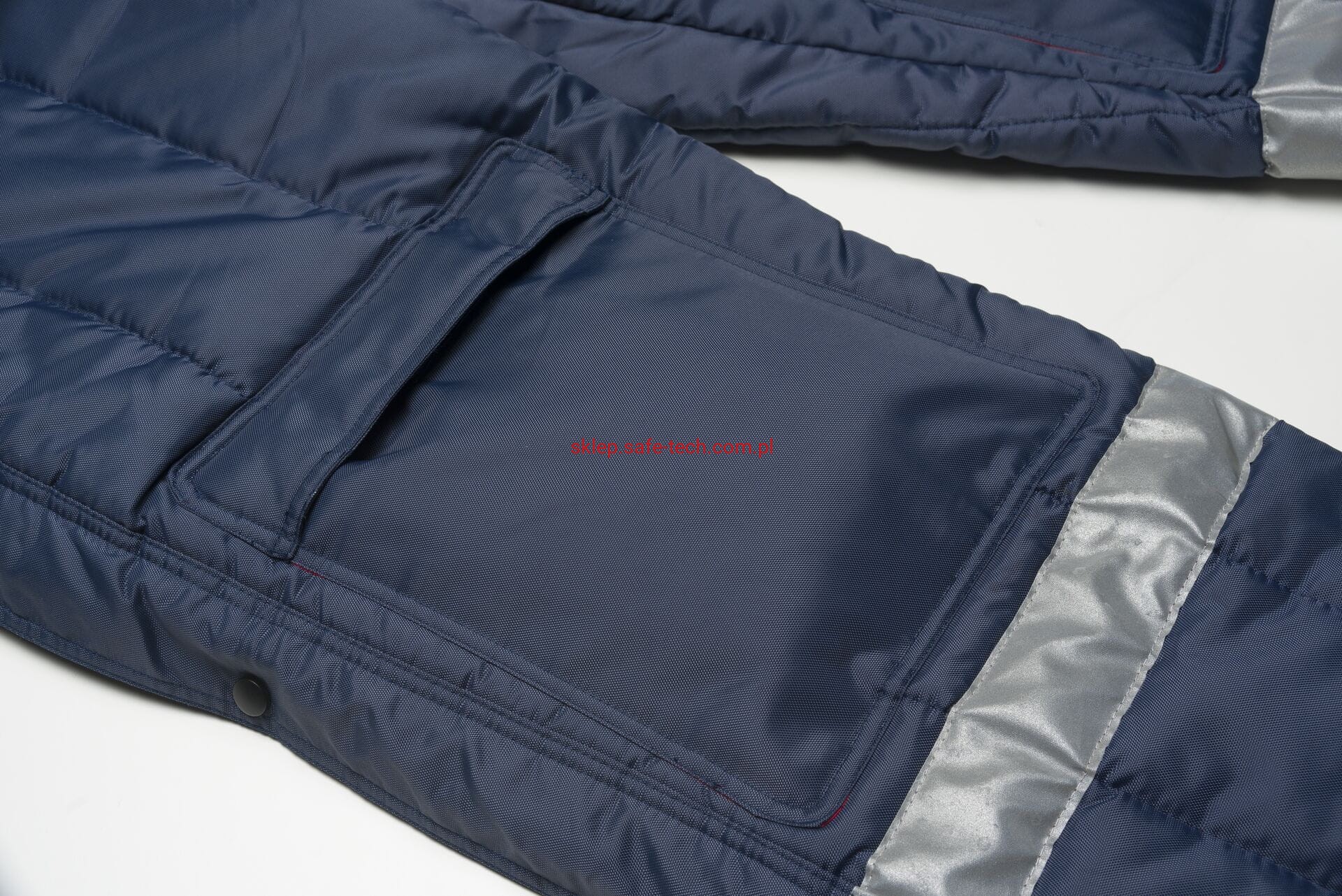 - zamek błyskawiczny z przodu na całej długości, 2 naszyte kieszenie po bokach z patkami, wysoki, zachodzący na plecy tył spodni z elastycznymi szelkami, klamrowe zapięcia na szelkach, naszyte kieszenie na nakolannikach, boczny zamek błyskawiczny z patką dla ułatwienia zakładania, taśma odblaskowa na nogawkach