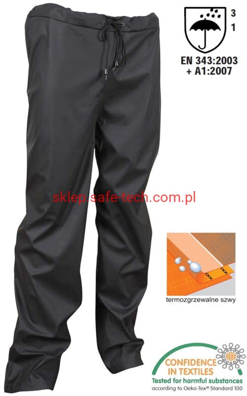 - wodoodporne i wiatroodporne, wszystkie szwy termozgrzewalne, regulowane nogawki, ściągacz do regulacji w pasie