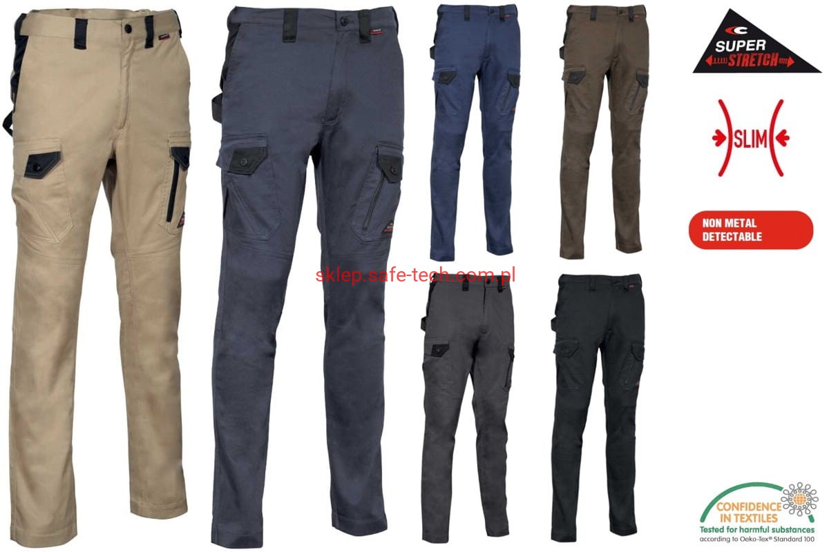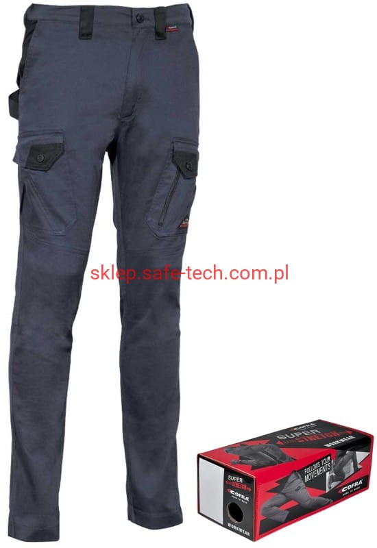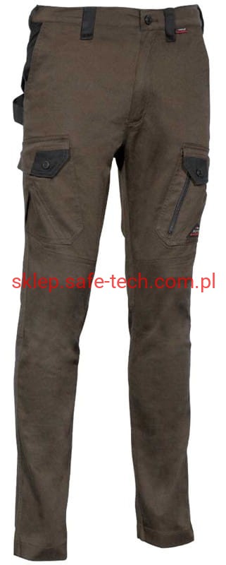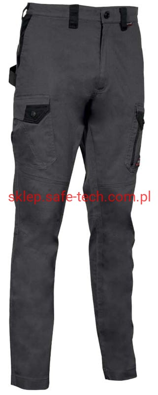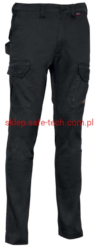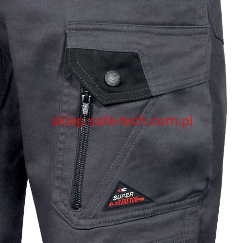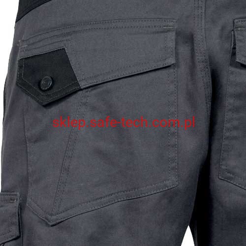 - 2 szerokie kieszenie przednie, pętla na młotek, ergonomiczny fason nogawek i kieszeni na kolanach, kieszeń na udzie po lewej z podwójnym zapięciem na rzep i zamek, kieszeń na udzie po prawej z zapięciem na zatrzask