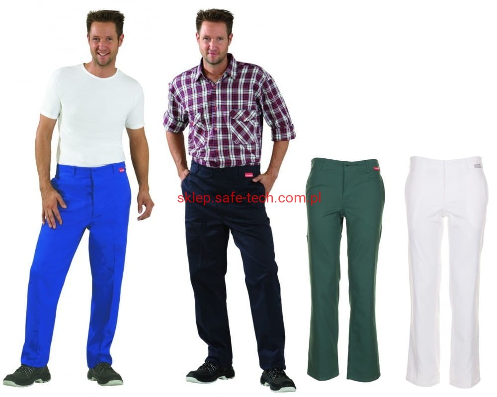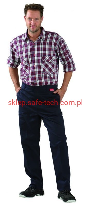 - ściągacz okrągły z 7 szlufkami, zapinany rozporek, 2 wszyte kieszenie przednie, 1 wzmocniona kieszeń z tyłu, 1 kieszeń na miarkę