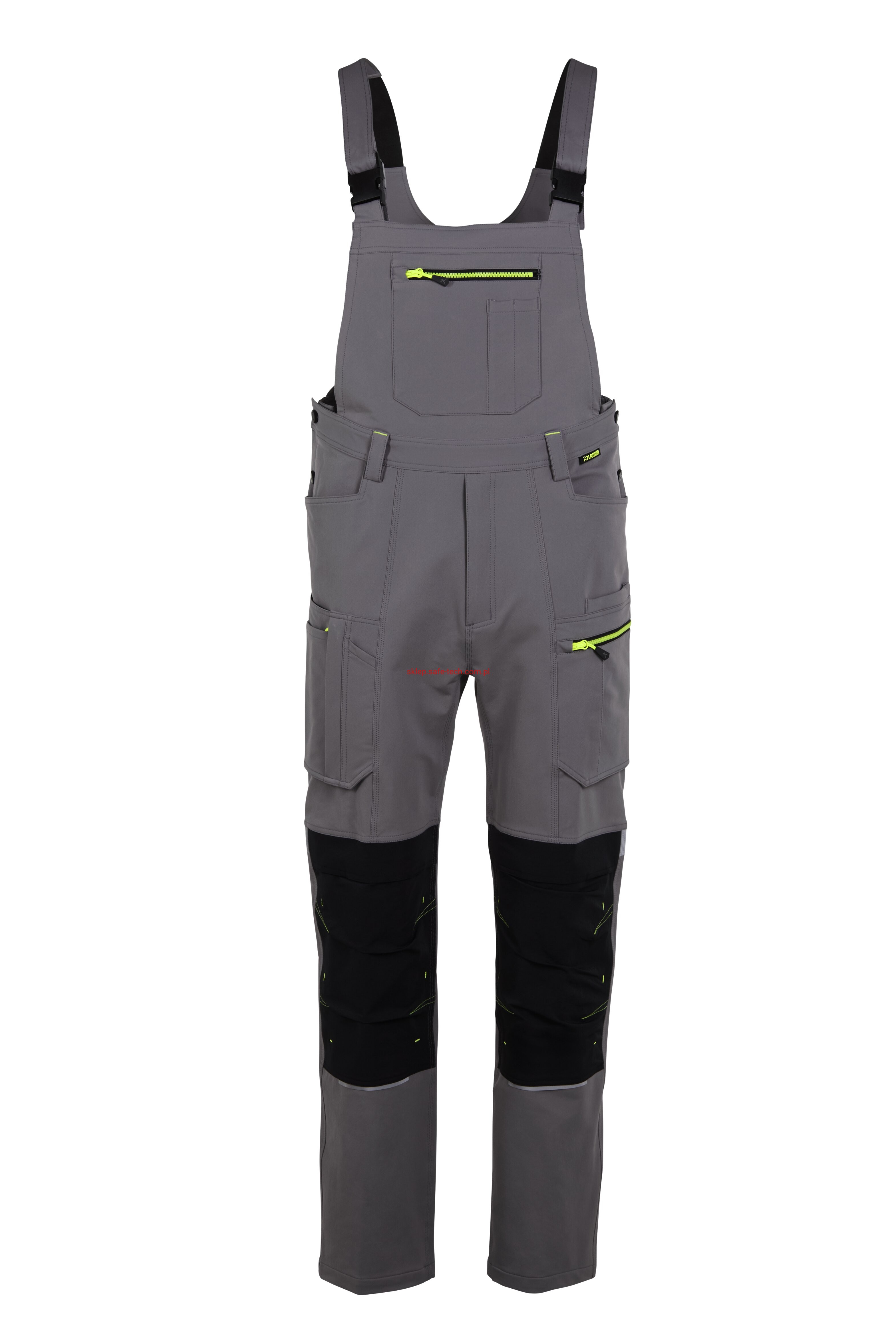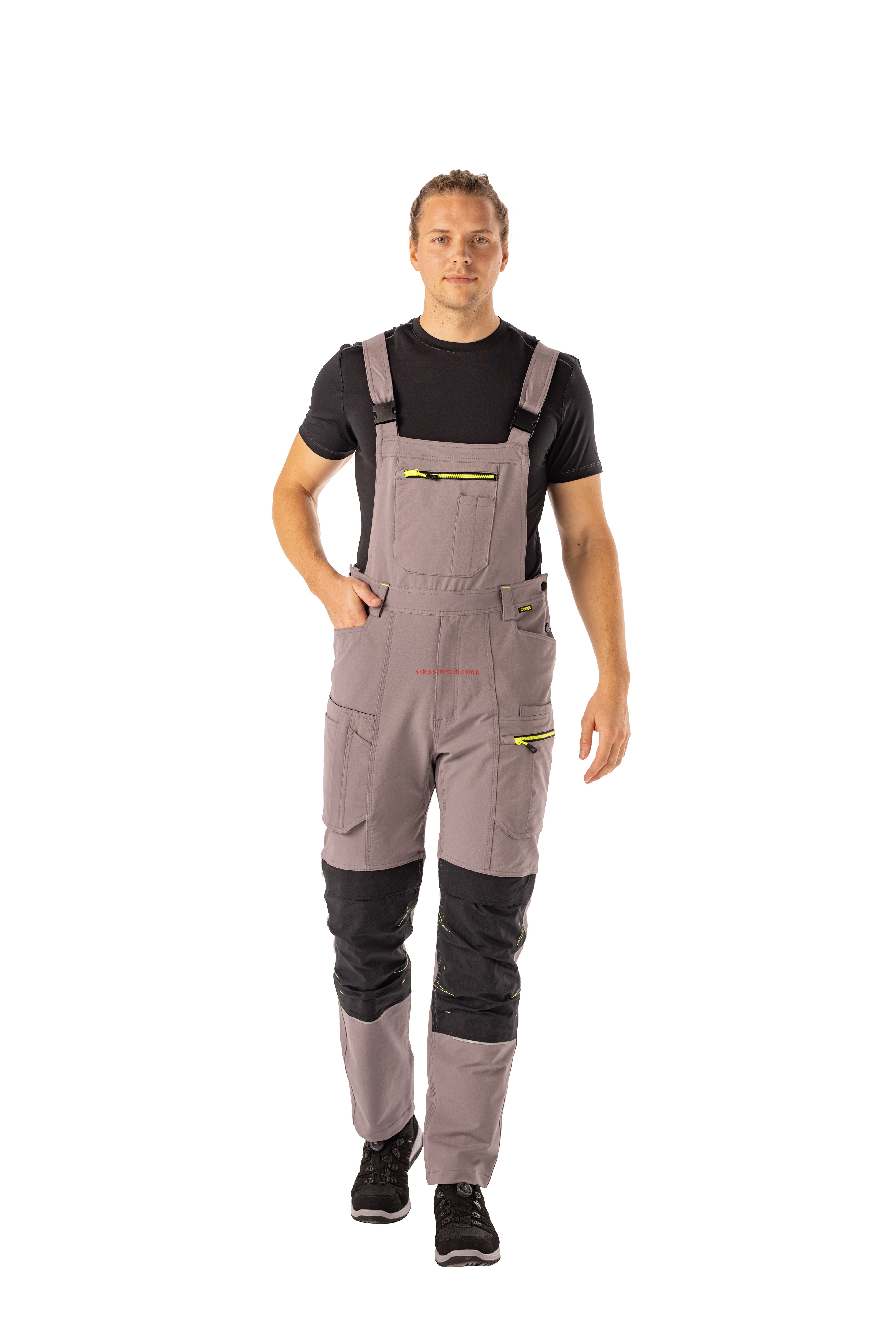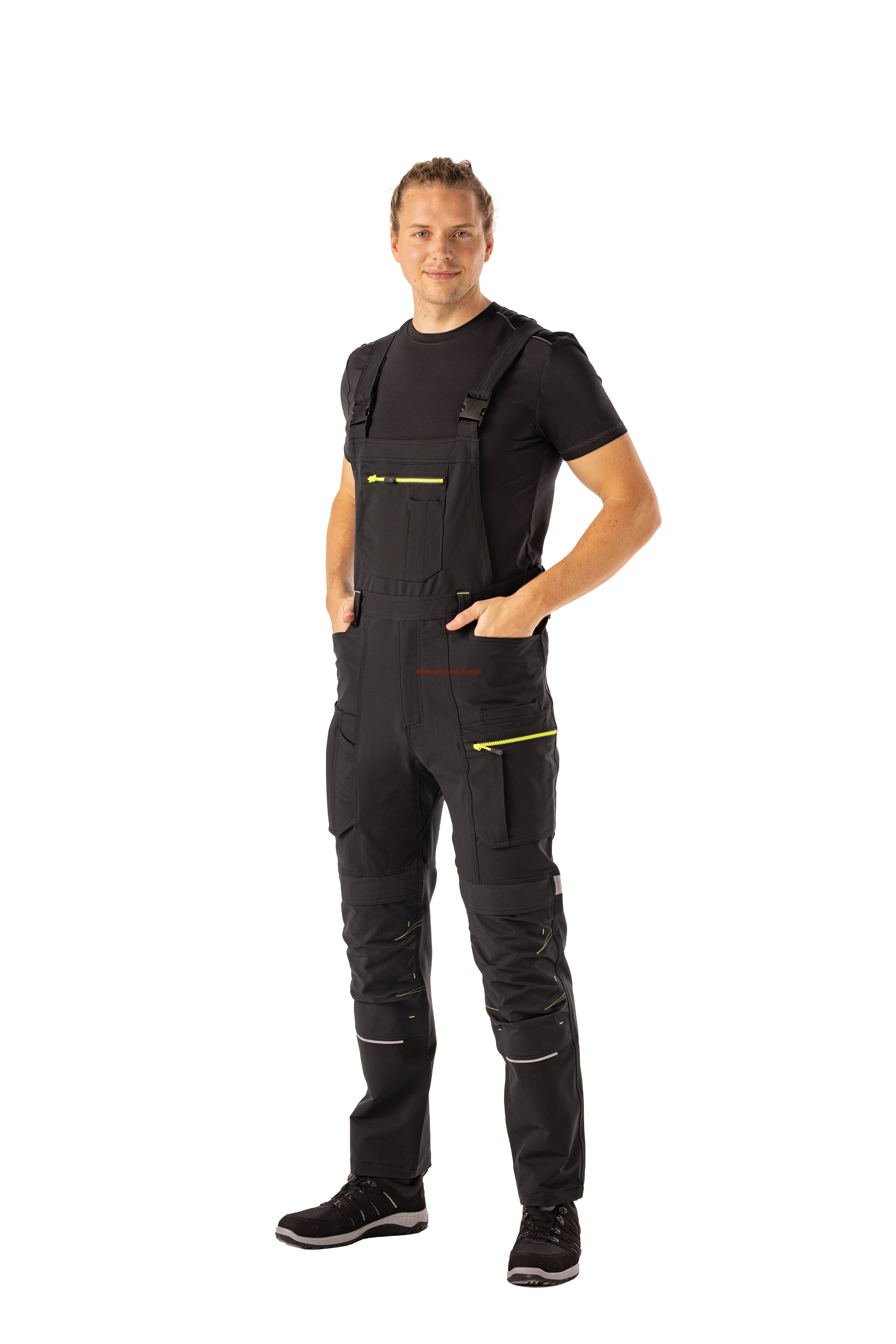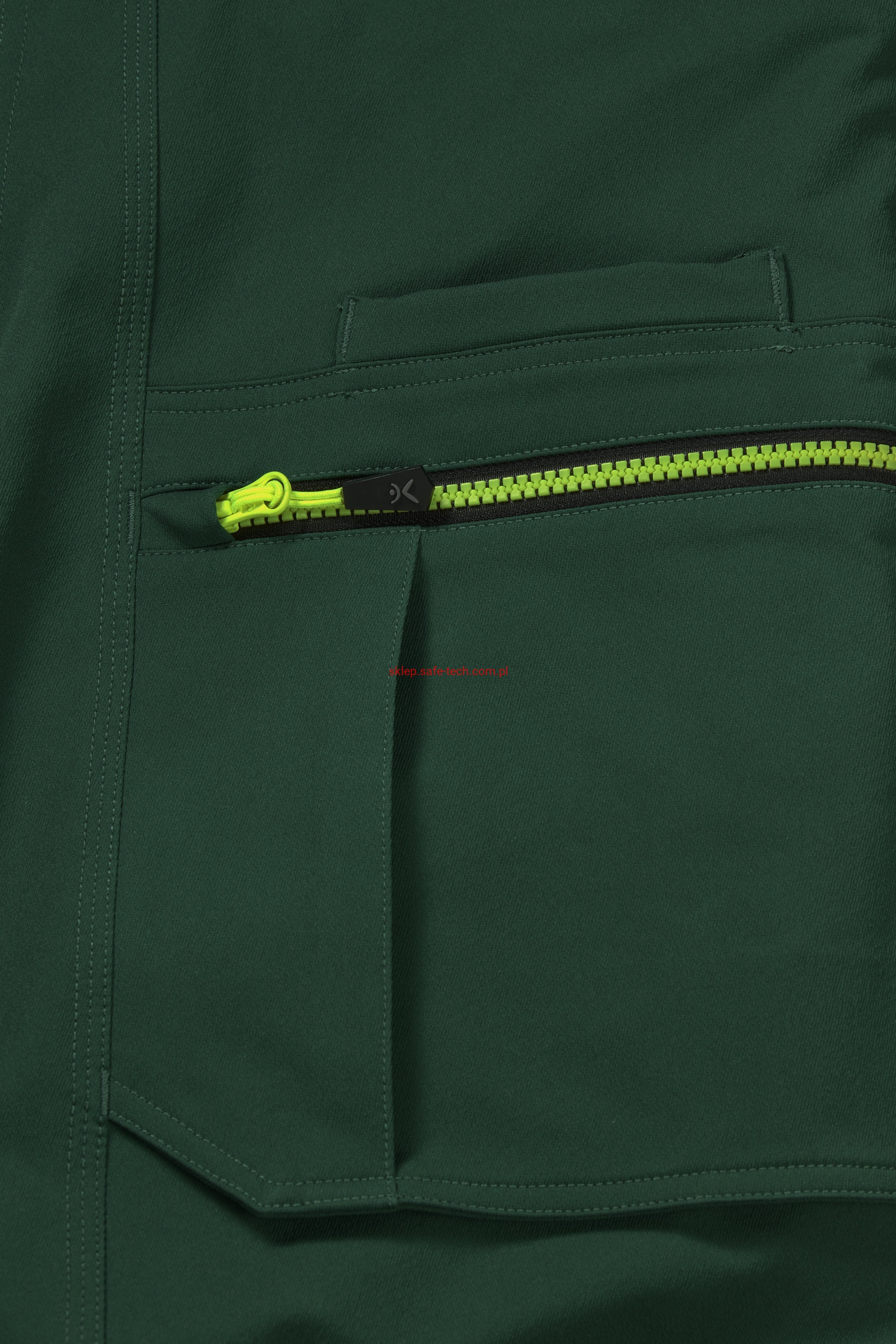 - 2 wstawiane obszerne kieszenie, 2 naszyte kieszenie na kolanach obsługiwane od góry, kieszeń na klapie z zamkiem błyskawicznym, regulacja obwodu w pasie guzikiem dżinsowym, karczek z tyłu spodni ze skrzyżowanymi szelkami, szelki z elastyczną wstawką, 5 szerokich szlufek na pasku, szlufka na młotek, odblaskowe aplikacje, rozporek na zamek błyskawiczny, 2 naszywane kieszenie na kolanach, obsługiwane od góry, kieszeń na pasku z zamkiem błyskawicznym i 2 przegródkami na długopisy.