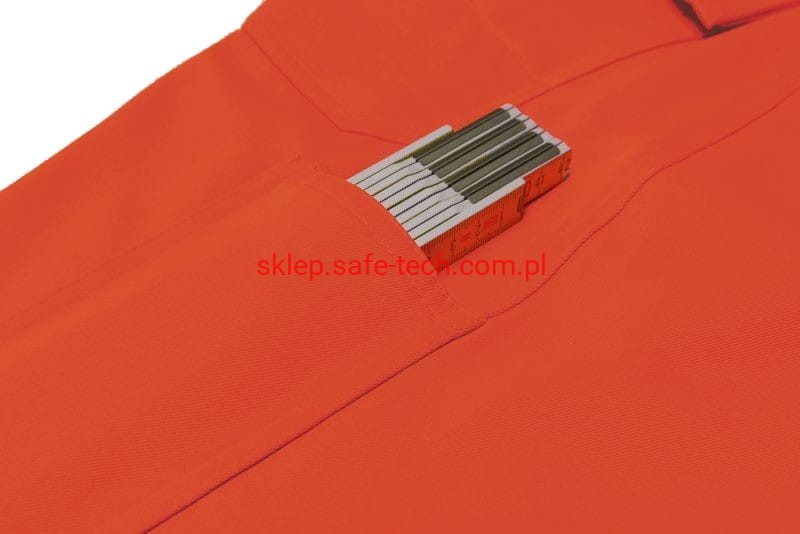- pasek z 7 szlufkami, pasek z metalową sprzączką, 2 naszyte, wzmocnione kieszenie przednie, 1 kieszeń z tyłu z patką i zapięciem na guzik, 1 kieszeń na metrówkę z prawej strony, 1 kieszenie na udzie z patką i zapięciem na rzepy, 1 kieszeń na komórkę