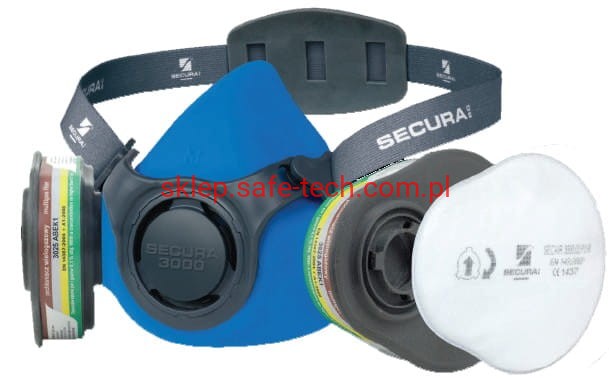 - w skład zestawu wchodzą półmaska SECURA 3000 silikonowa, 2 pochłaniacze 3025 ABEK1, 2 filtry SECAIR 3000.02 P2 R